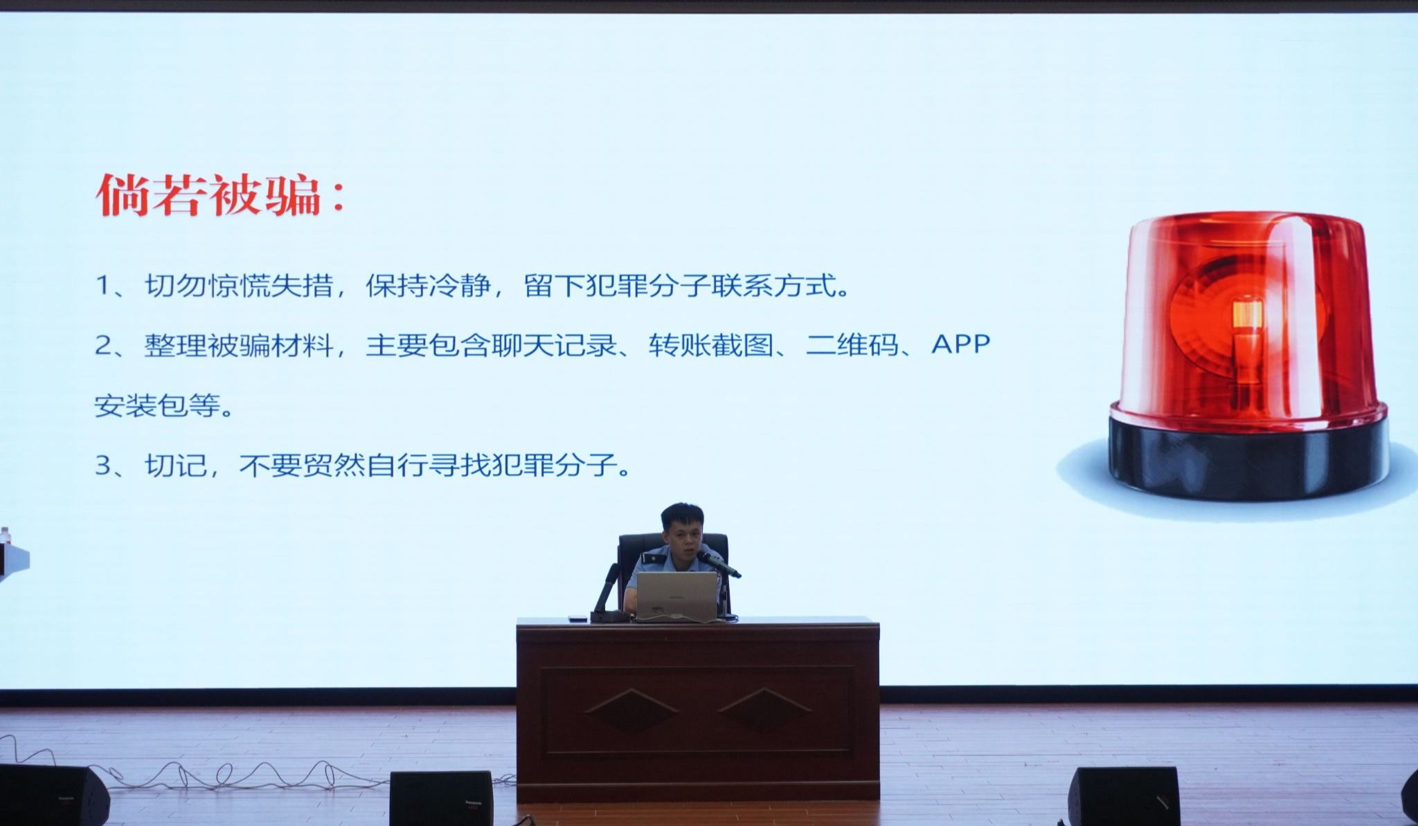 李哲则围绕“电信诈骗”主题,针对新生群体易遭遇的“兼职刷单”“冒充客服”“网络交友诱导”等诈骗手段,逐一剖析犯罪分子的作案套路与识别技巧。他特别提醒新生,要时刻保持警惕,不轻易相信陌生信息,遇可疑情况第一时间联系老师、家长或向公安机关报案。
