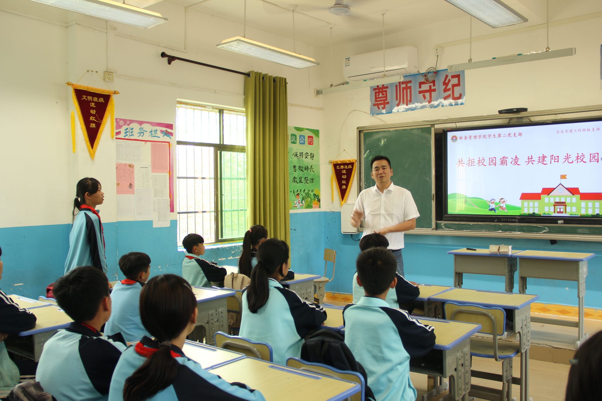 在水头小学教室里,财务管理学院师生用通俗易懂的语言,向小学生们讲解校园霸凌案例及其预防措施,介绍了生理卫生知识、性别差异、心肺复苏操作方式以及日常生活中自我保护等内容。通过展示毒品仿真模型、讲述真实案例,让小朋友们直观地了解毒品的种类、危害以及如何防范毒品侵害,在他们心中种下“珍爱生命,远离毒品”的种子,提高对毒品的警惕性和防范意识。