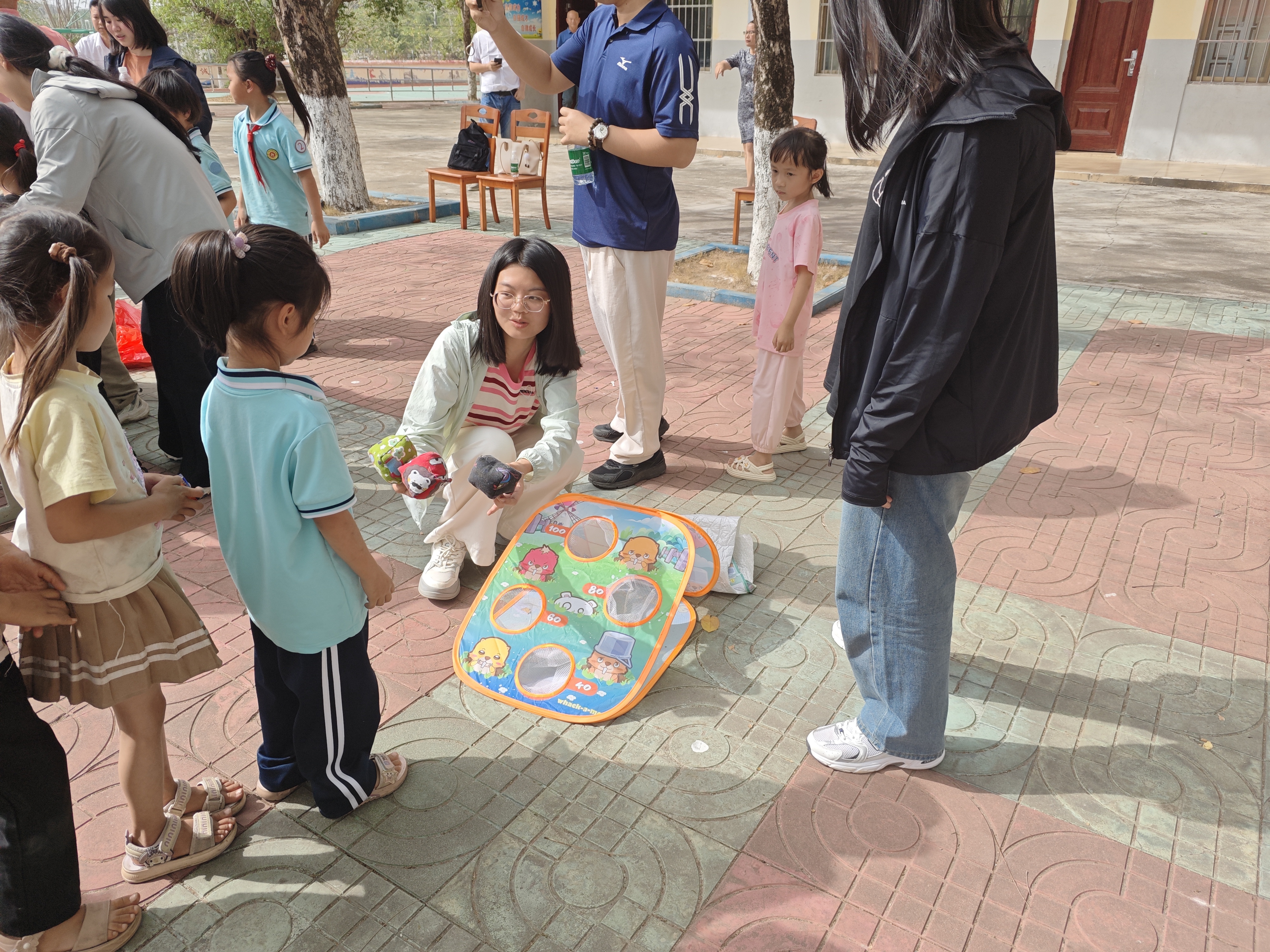 在水头小学广场,丢沙包、踢足球、绘画活动……财务管理学院师生组织丰富多彩的文体活动,让小朋友们在活动中释放压力,增强体质,培养团队协作精神,用五彩的画笔展现丰富的想象力和创造力。