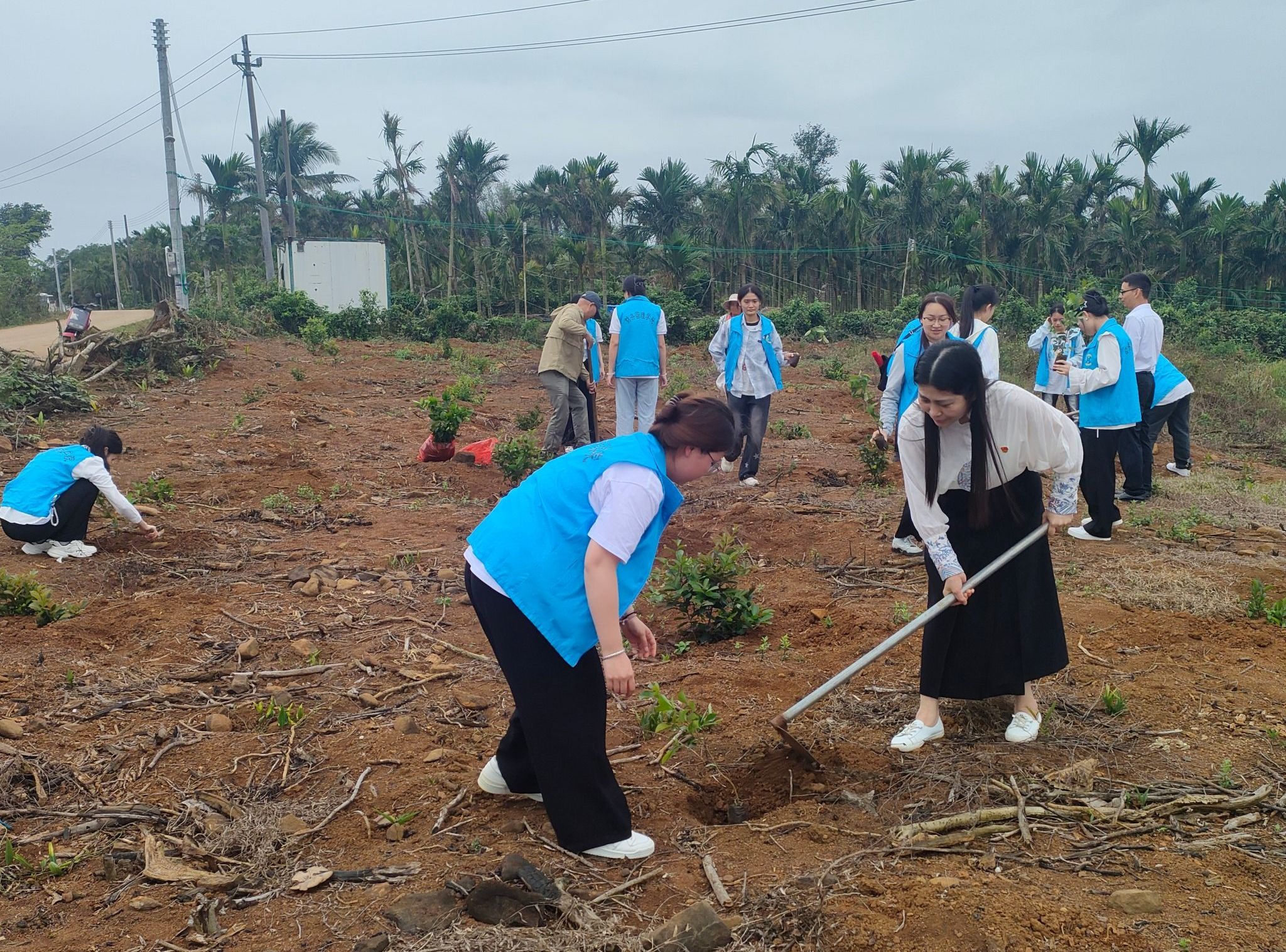 近日,米兰milan官方网站财务管理学院学生第一党支部师生党员与志愿者30余人来到海口市三门坡镇清泉村,深入田间地头,开展“助农植树促生态,采摘圣女果助增收”主题党日活动,进一步深化校村党建合作,通过义务植树、采摘帮扶、技术指导等形式,助力当地脱贫户发展特色产业,为乡村绿色发展注入新活力。