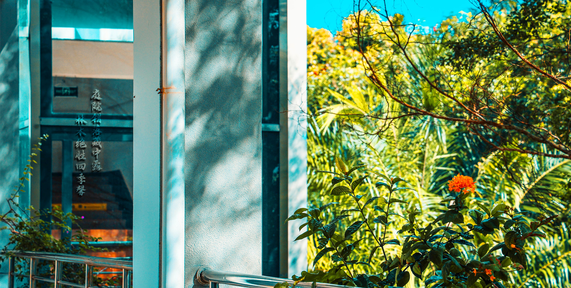 红花绿叶映阳台 忽忽微风扶一枝