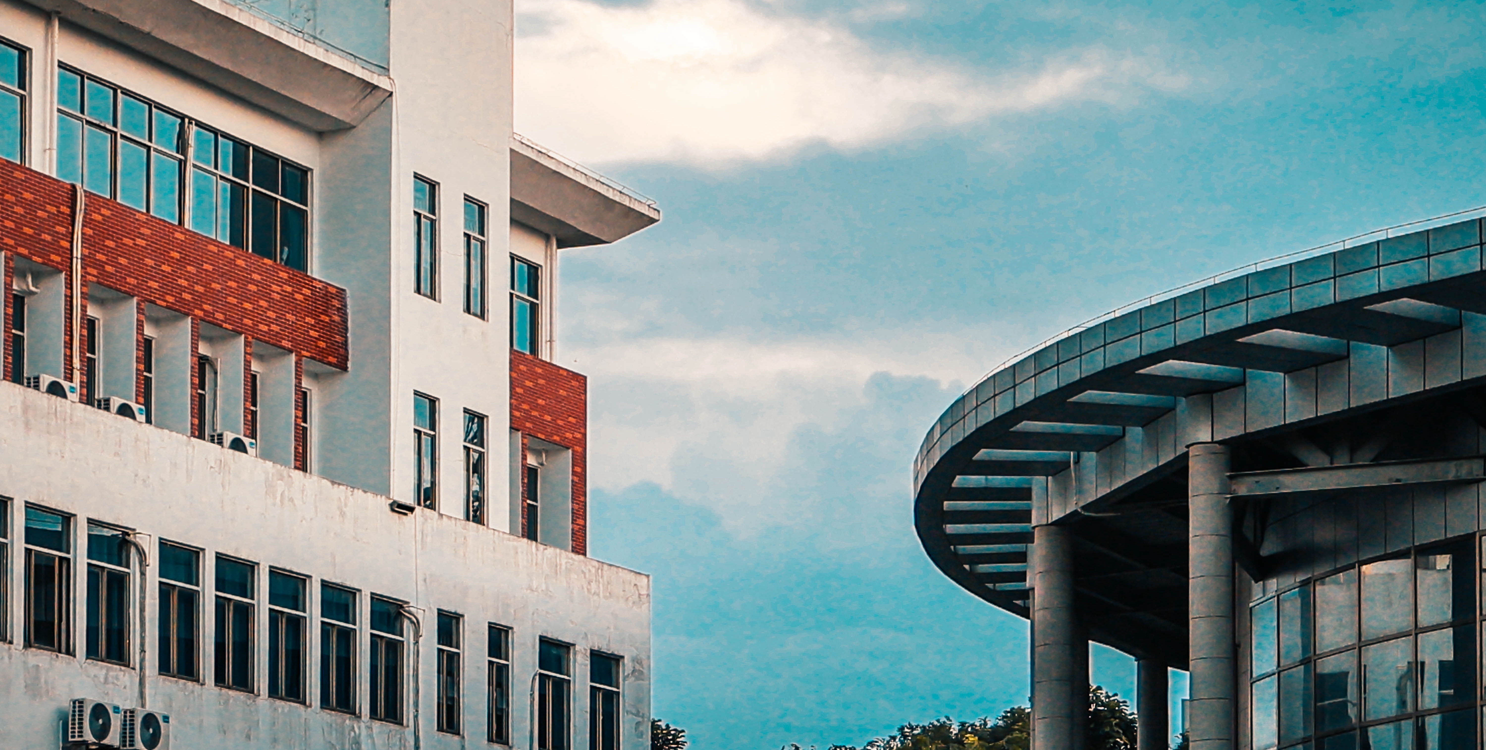 白墙红瓦碧云天 绿树参差掩映间