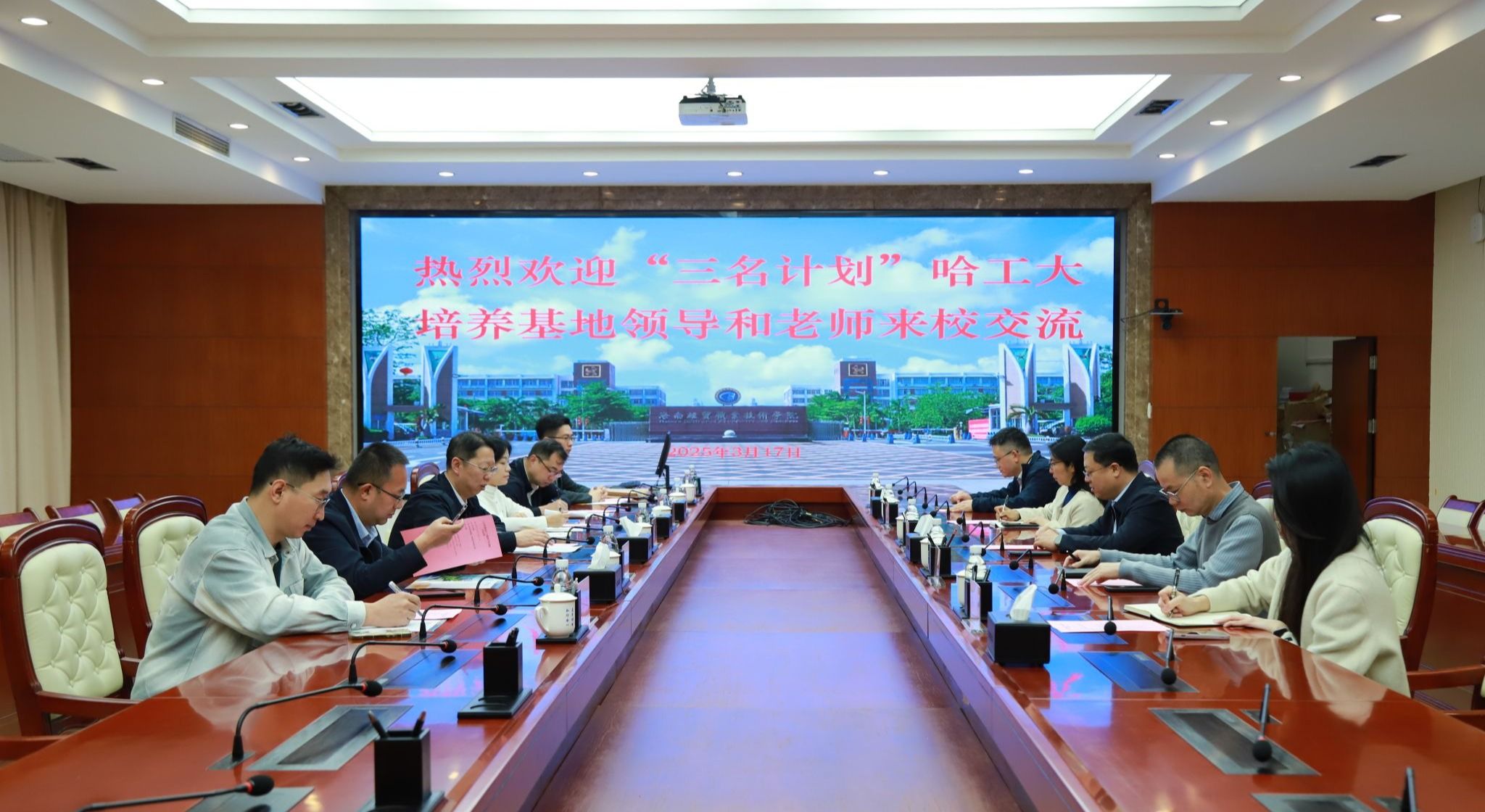 2025年3月17日,哈尔滨工业大学继续教育学院副院长杨海一行6人来到米兰milan官方网站,开展“三名计划”教师线下实践交流。学校党委副书记、校长崔昌华,党委委员、副校长李厚永热情接待了哈尔滨工业大学一行。