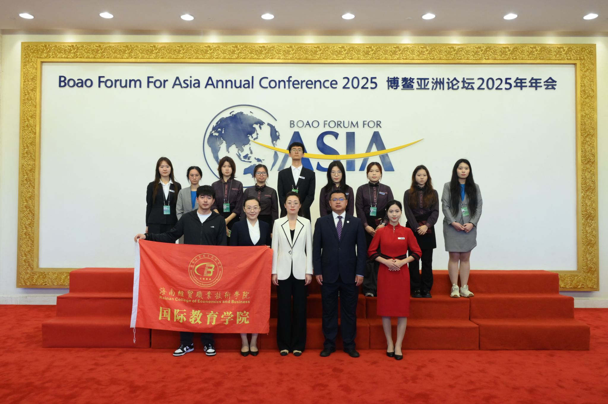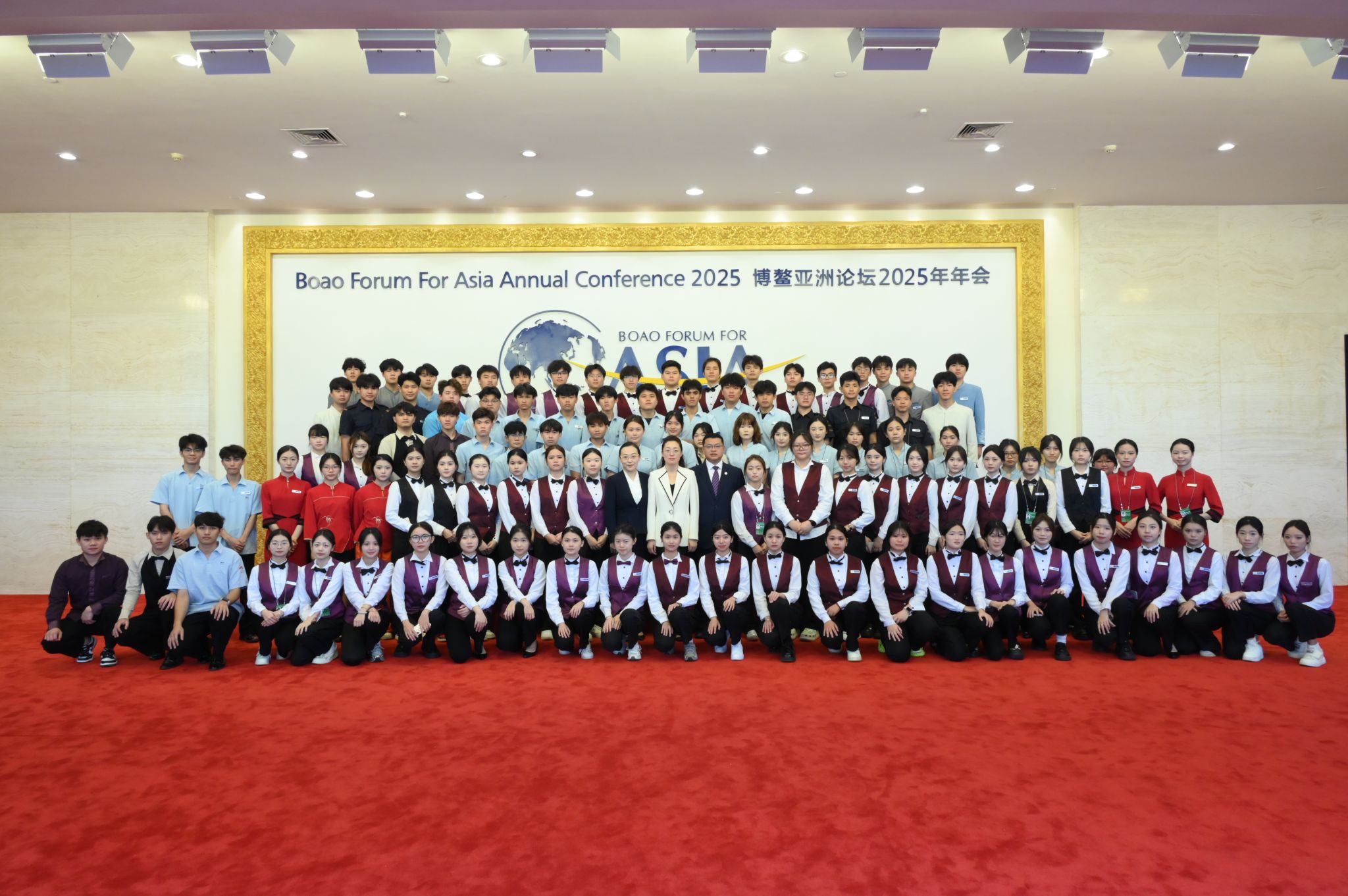 在博鳌亚洲论坛2025年年会期间,米兰milan官方网站137名师生志愿者分别在博鳌亚洲论坛大酒店、博鳌亚洲论坛东屿岛大酒店、博鳌金海岸大酒店开展志愿服务,全力做好餐饮、宴会、安保、礼宾、康养接待等服务保障工作,为年会的成功举办奉献了青春力量。