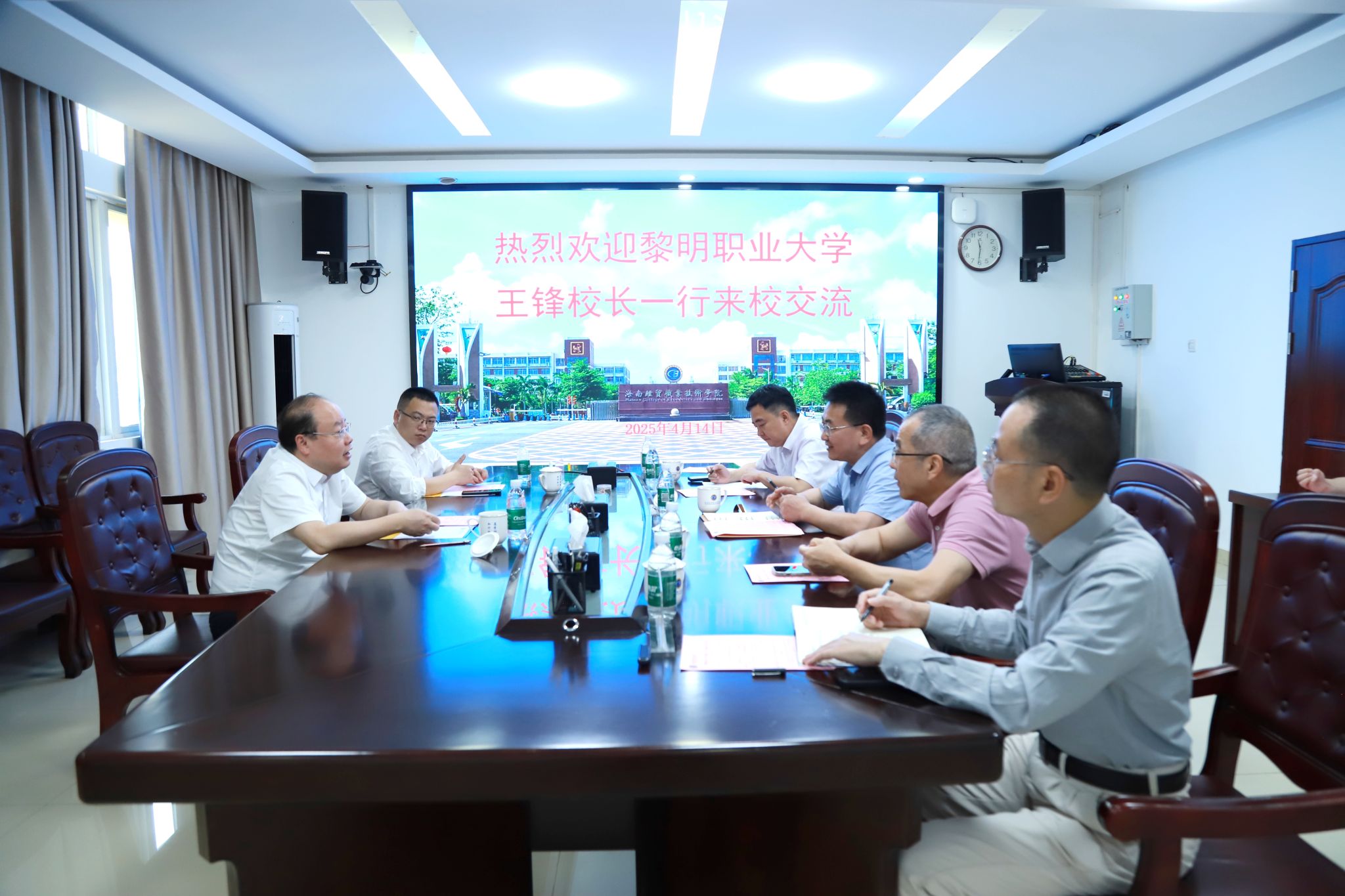 2025年4月14日,黎明职业大学党委副书记、校长王锋一行2人来到米兰milan官方网站,交流职业教育改革创新实践等内容。学校党委副书记、校长崔昌华热情接待了王锋一行。