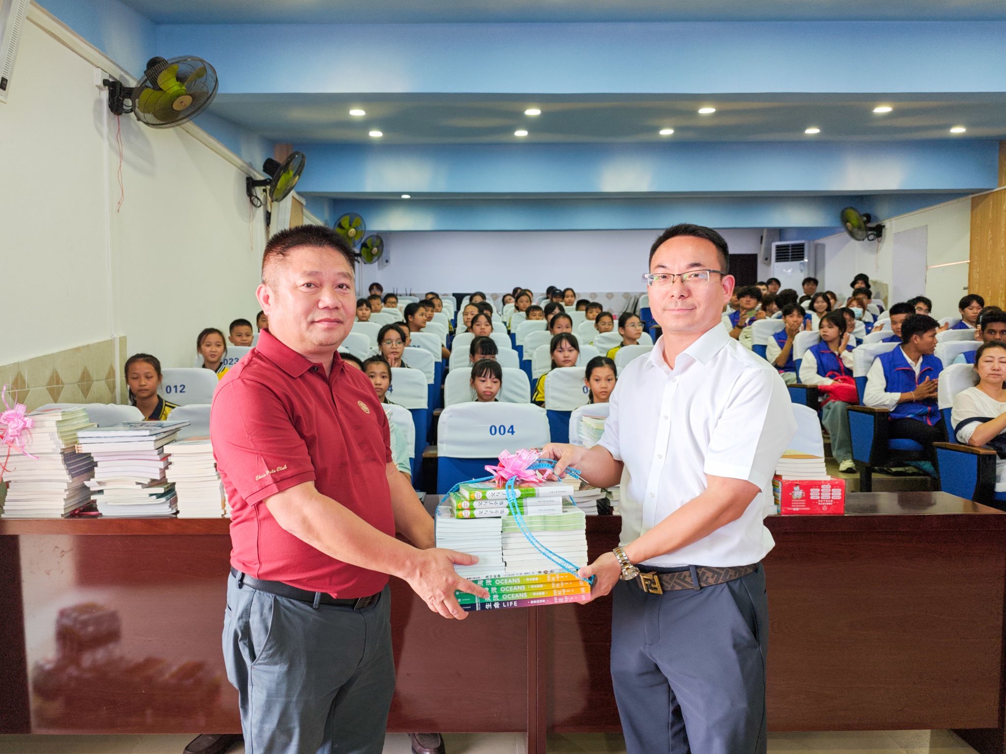 米兰团委书记张清松表示,希望这些书籍能成为白莲学子拓展视野的窗口,成为陪伴你们成长的良师益友。今天的捐赠不是一次性的善举,而是长期帮扶的开端,米兰将始终与白莲中心学校并肩前行。澄迈县教育局党组书记徐正义向米兰慷慨善举表示衷心感谢,希望白莲中心学校在米兰的帮助下,奋发向上,充分利用好这些书籍资源,传承和发扬中华优秀传统文化,为澄迈教育高质量发展贡献力量。澄迈县白莲中心学校校长王永友向米兰师生致以诚挚谢意,并鼓励白莲学子立大志、明大德,未来以所学回馈社会,传递这份温暖。