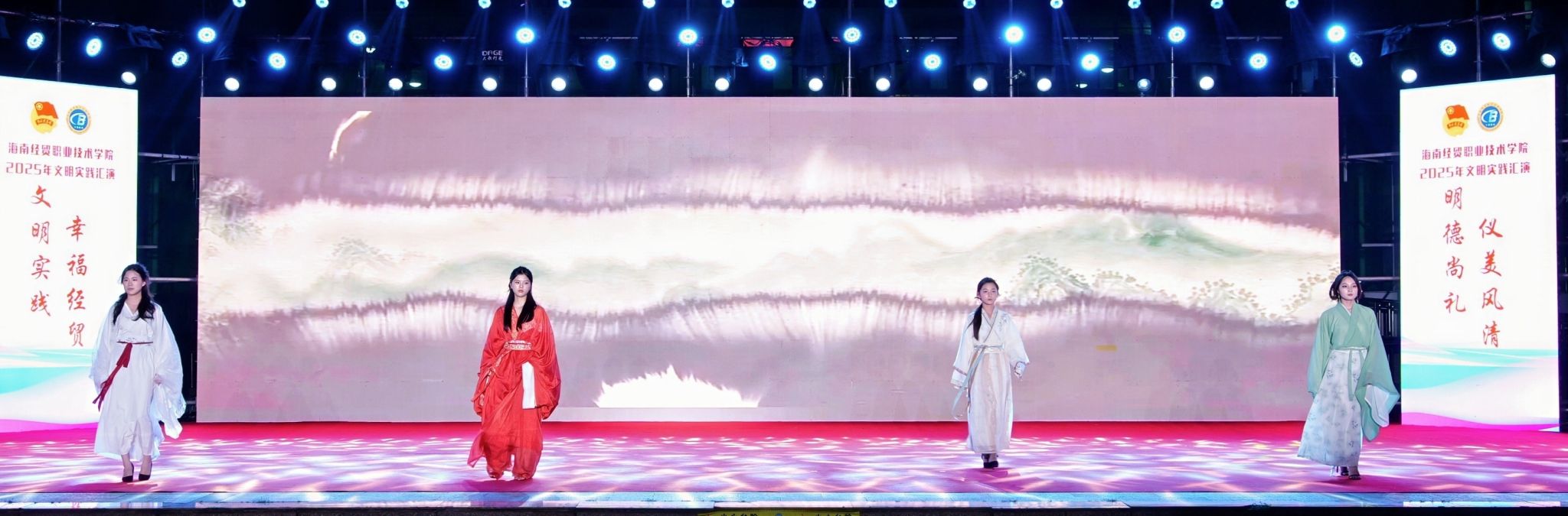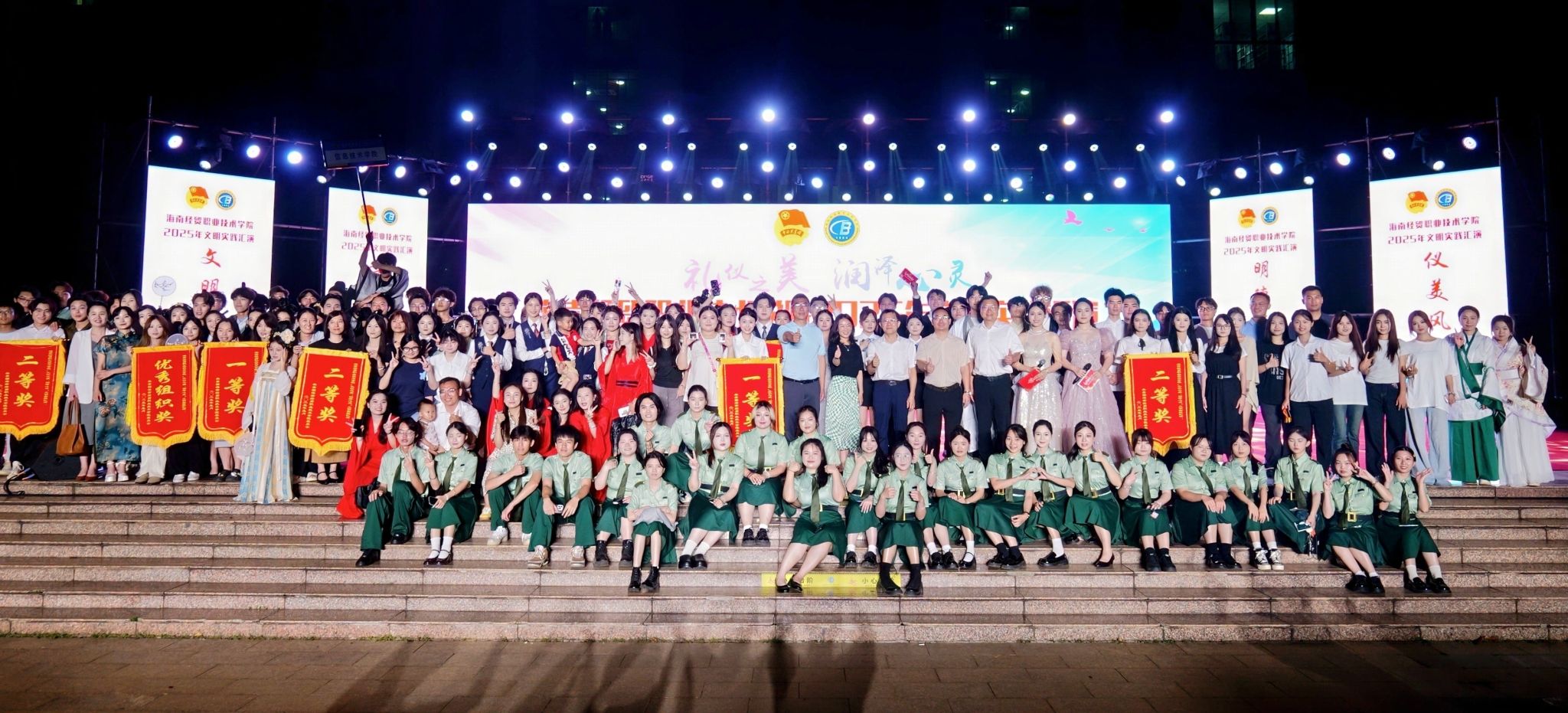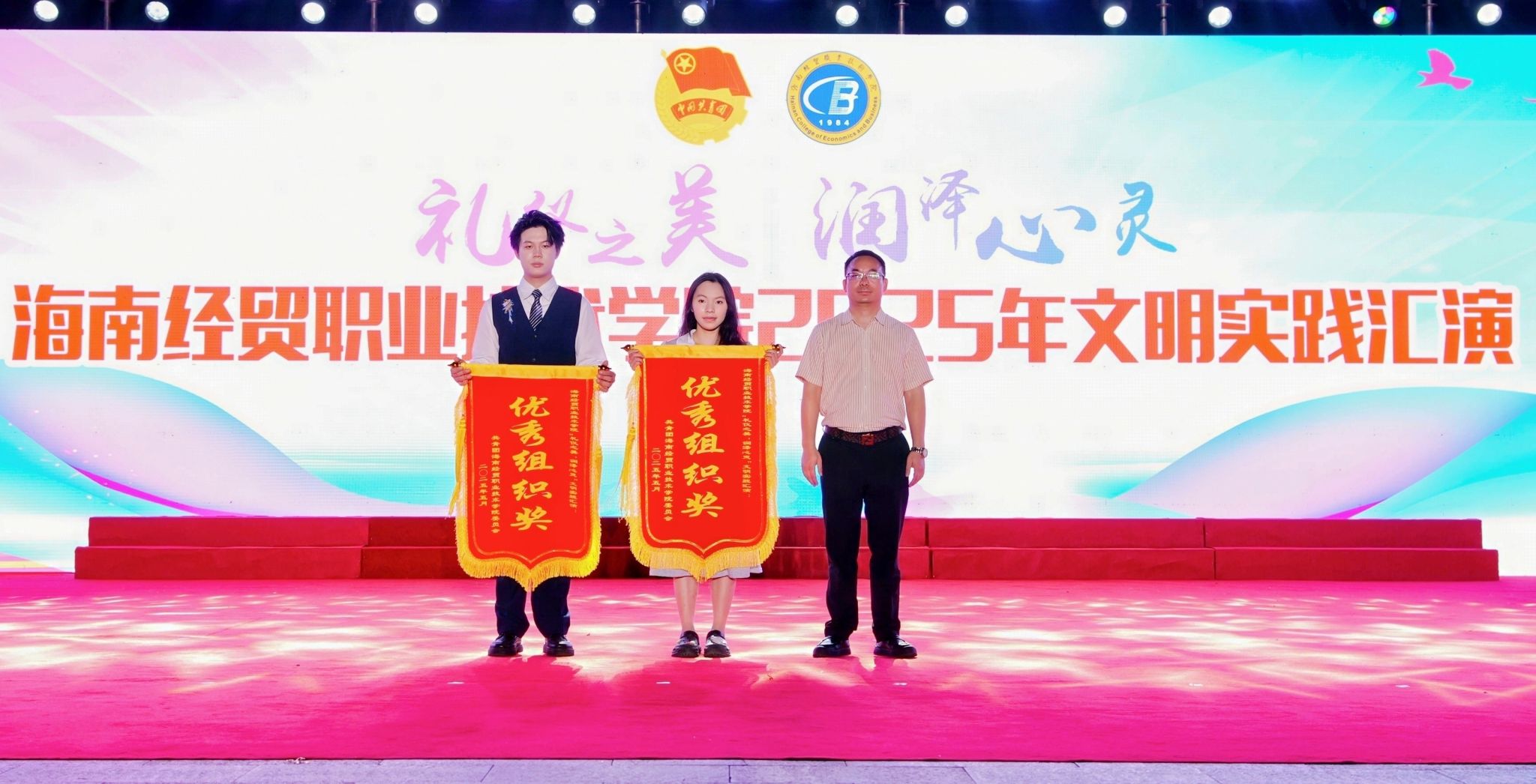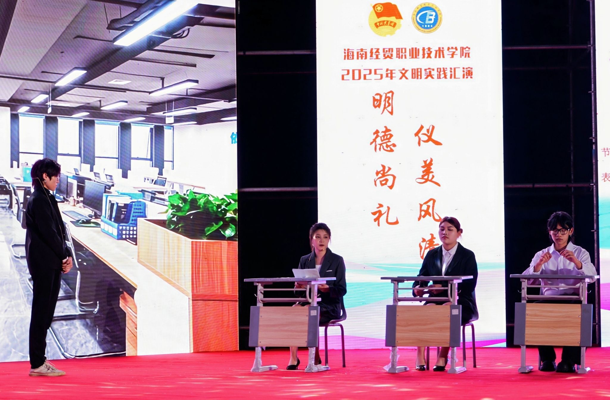 今年是学校“校园文化建设三年行动”计划启动之年。在“礼仪之美,润泽心灵”文明实践汇演中,各二级学院的同学们结合专业特色创新演绎,以丰富多彩的艺术形式展现礼仪文化的育人价值。