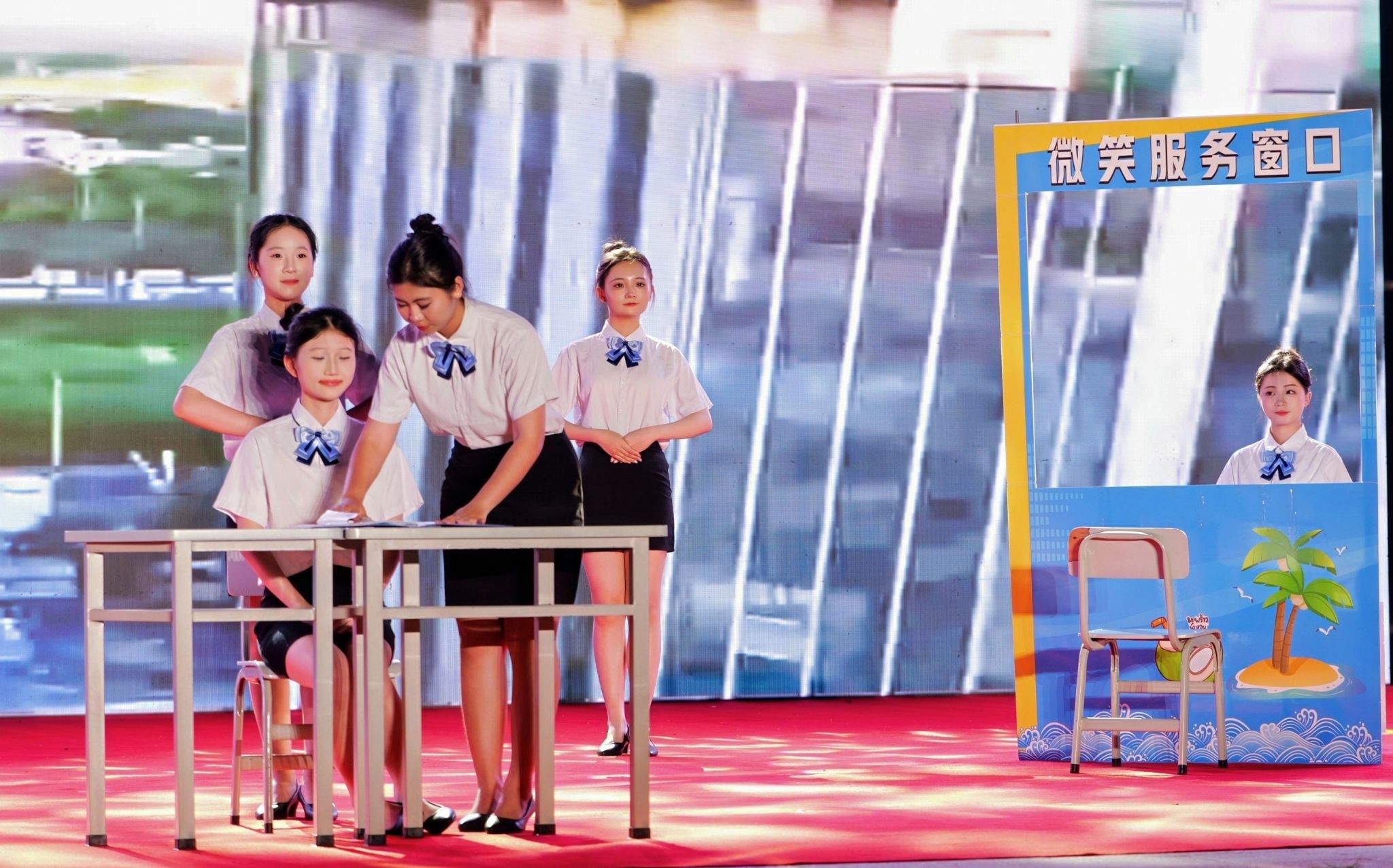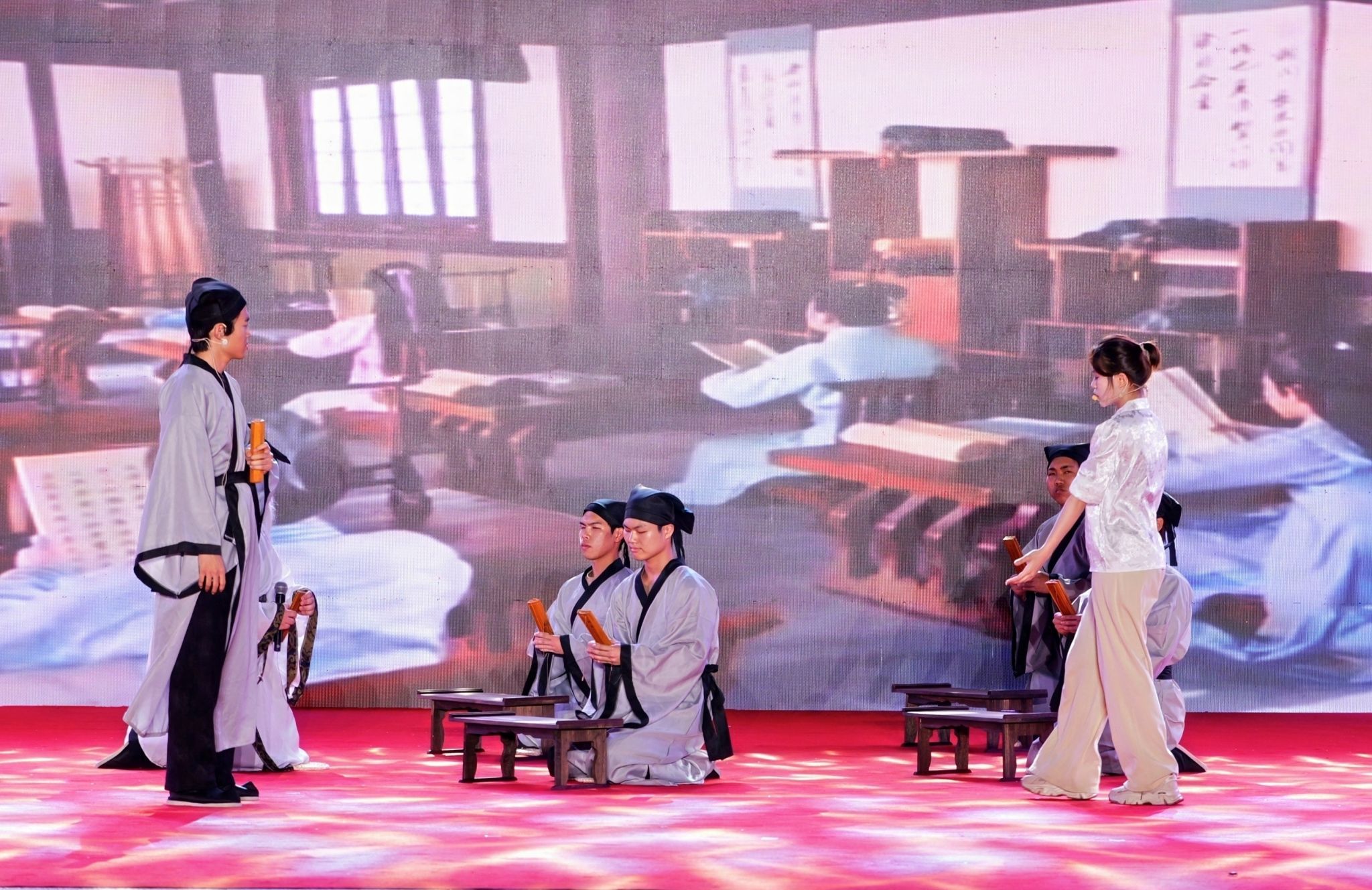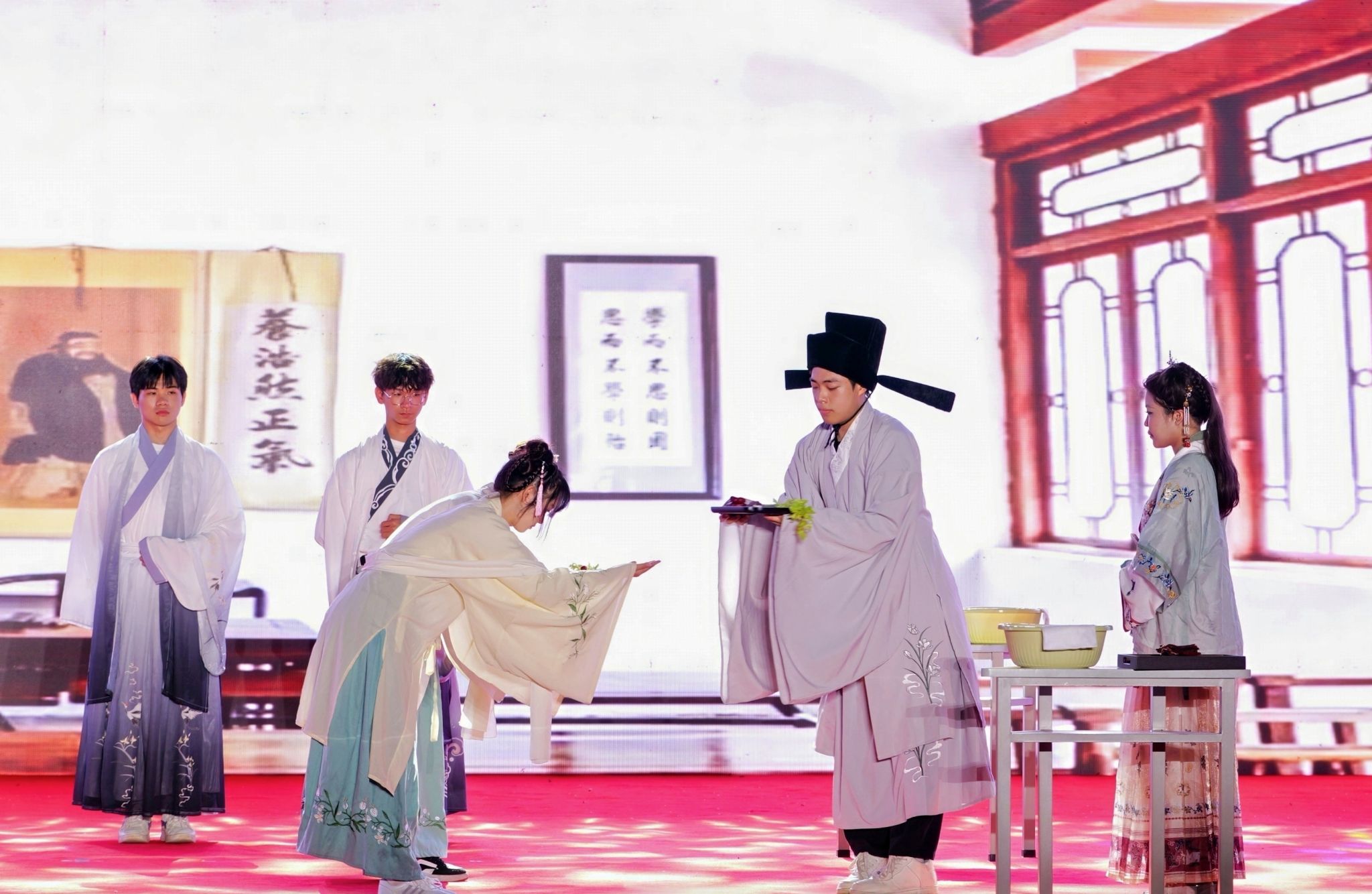 国际贸易学院的节目《礼遇海南,古今风华》通过生动的场景演绎,既展示传统拜师礼的庄重典雅,又体现现代服务礼仪的热情周到。