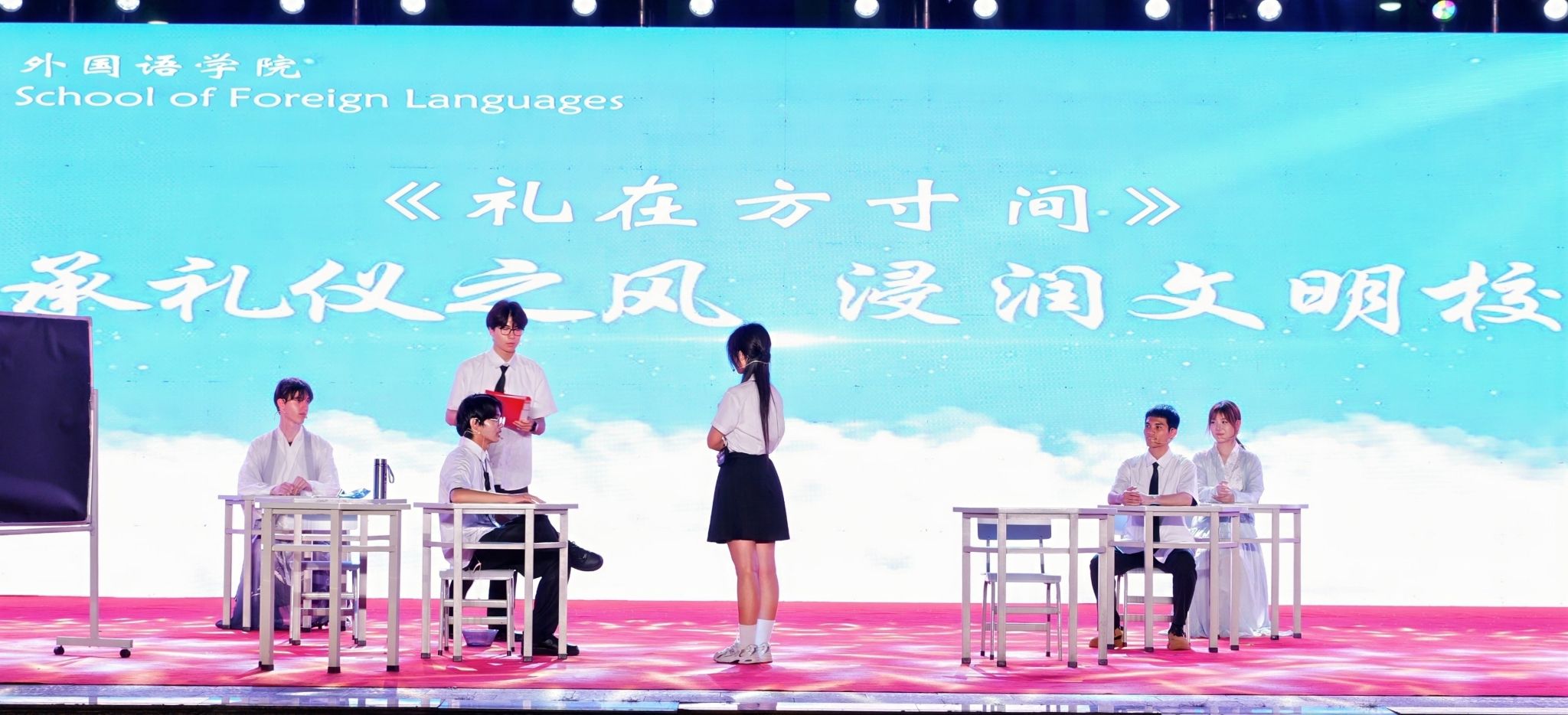 外国语学院的节目《礼在方寸间》通过师生在课堂上讨论校园礼仪实践方案,让学生懂礼,明礼,明白礼不在范式之中,而在对差异的觉知之间。