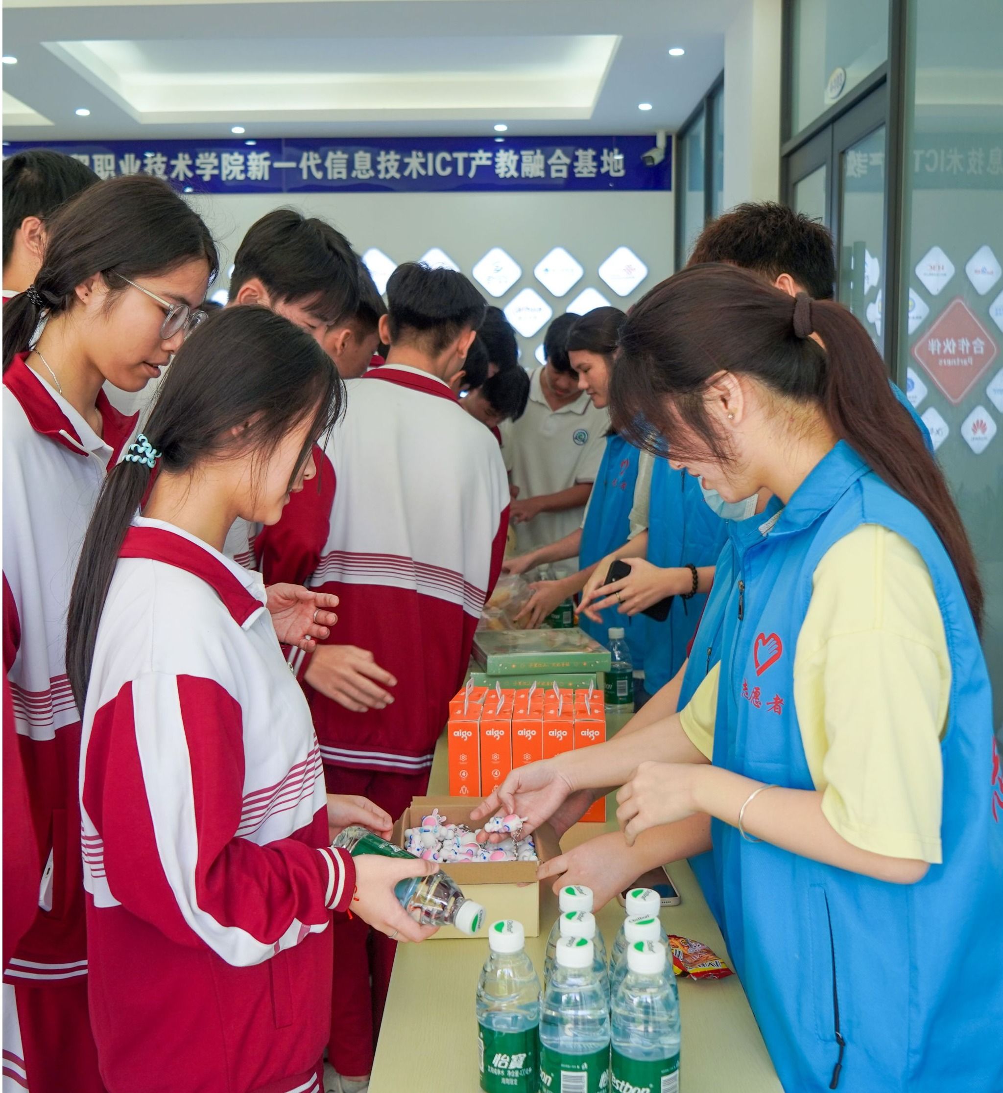 来到信息技术学院,学弟学妹们便收获了师生们的热情欢迎与周到接待。老师们化身专业向导,详细介绍学院ICT 产教融合基地,还现场演示讲解人工智能机器人,让大家近距离感受科技的魅力。志愿者们也积极行动,为学弟学妹们分发鼠标、手账本等实用小礼品,并送上暖心勉励,希望大家在求学路上勤奋刻苦、积极进取,书写青春华章。