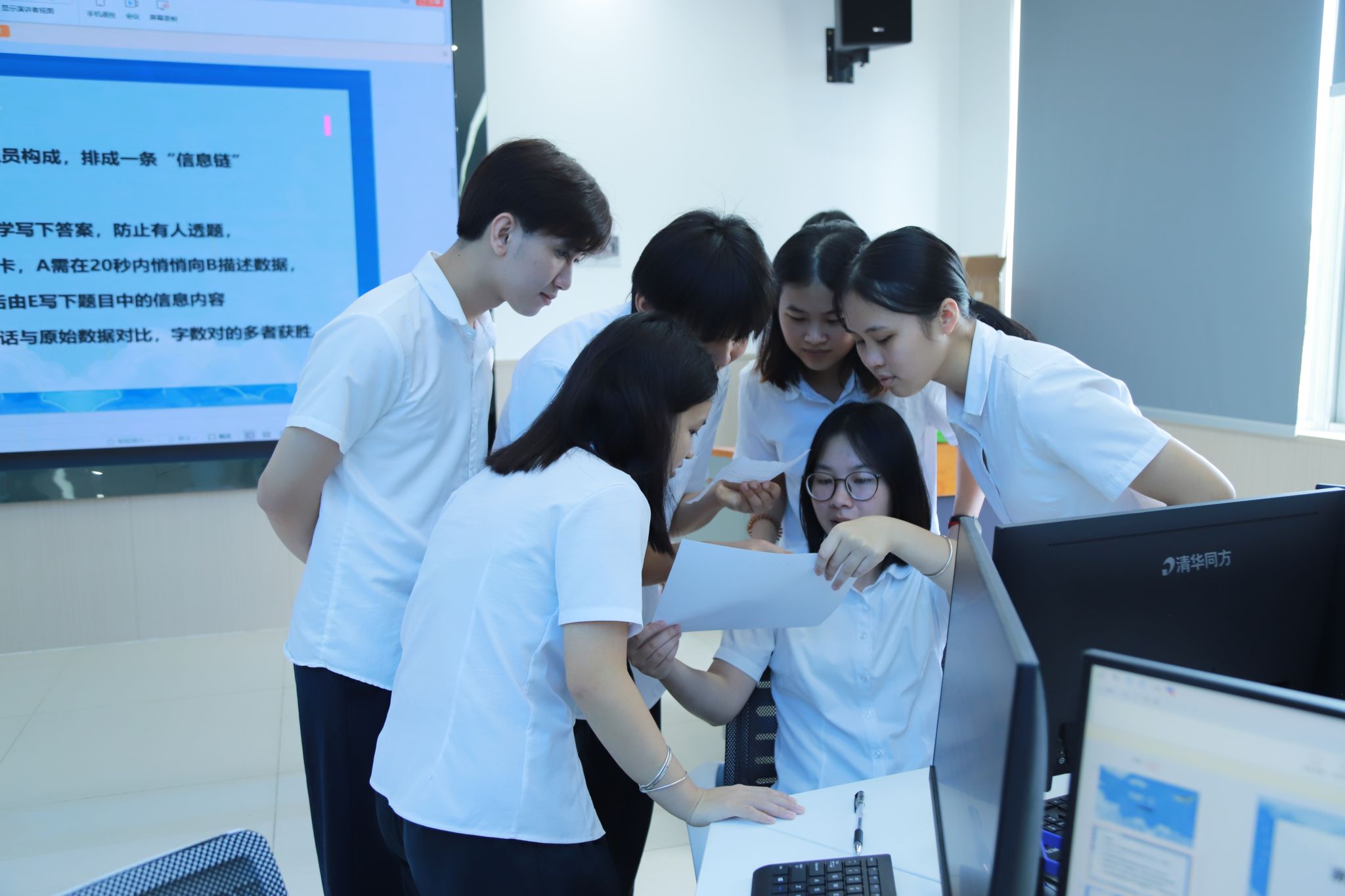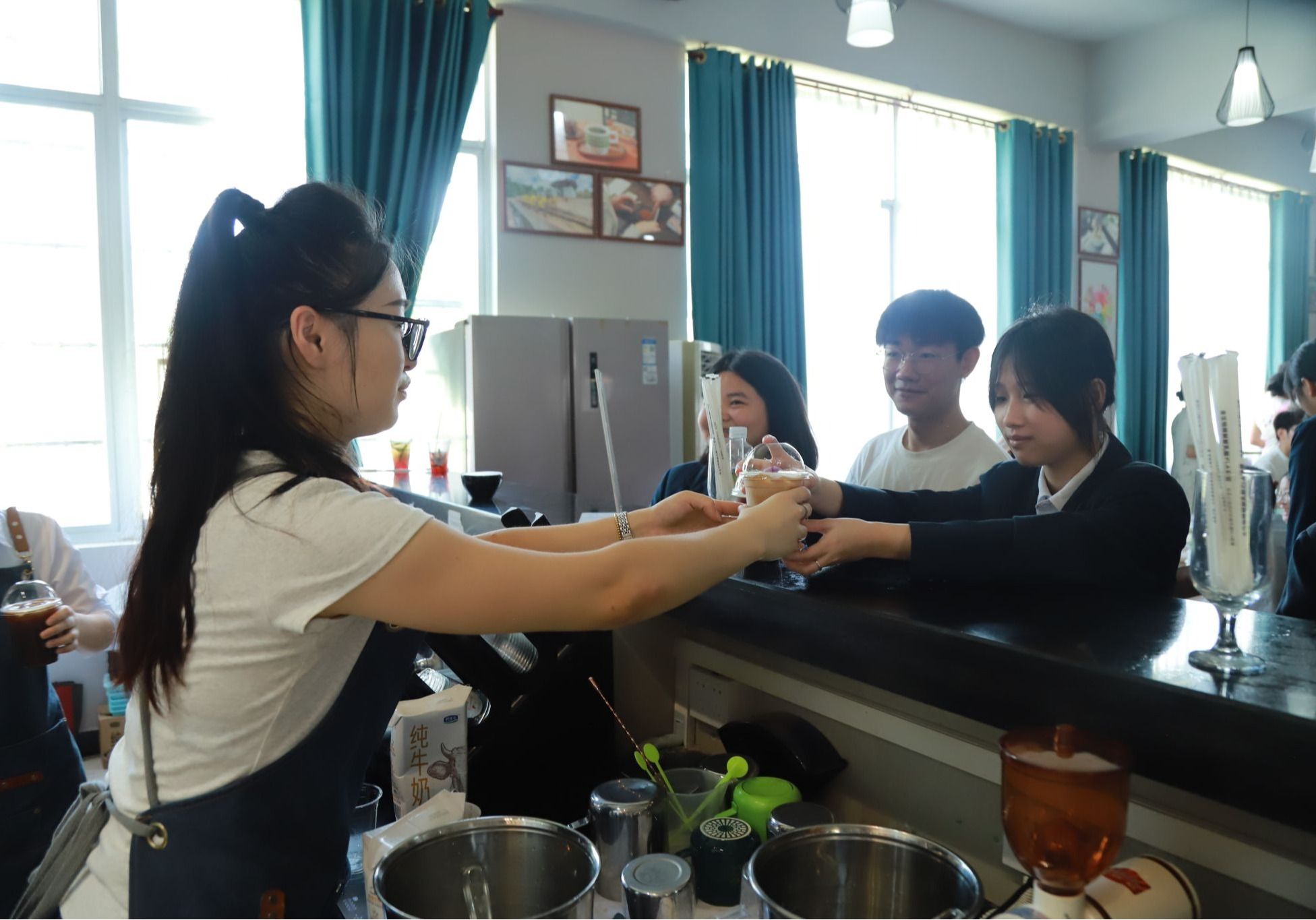 在国际旅游学院,学长学姐们大秀调饮技能,咖啡特调、新式饮品轮番登场,“椰青美式”“风味冰拿铁”“缤纷气泡水”等创意调饮风味绝佳。优雅的茶艺展示,让同学们领略到中华文化里礼仪、美学的多重意蕴。此外,中职学生还动手制作漆扇,参与“数据传声筒探案”挑战赛,沉浸式体验大数据分析与酒店应用课堂的魅力。