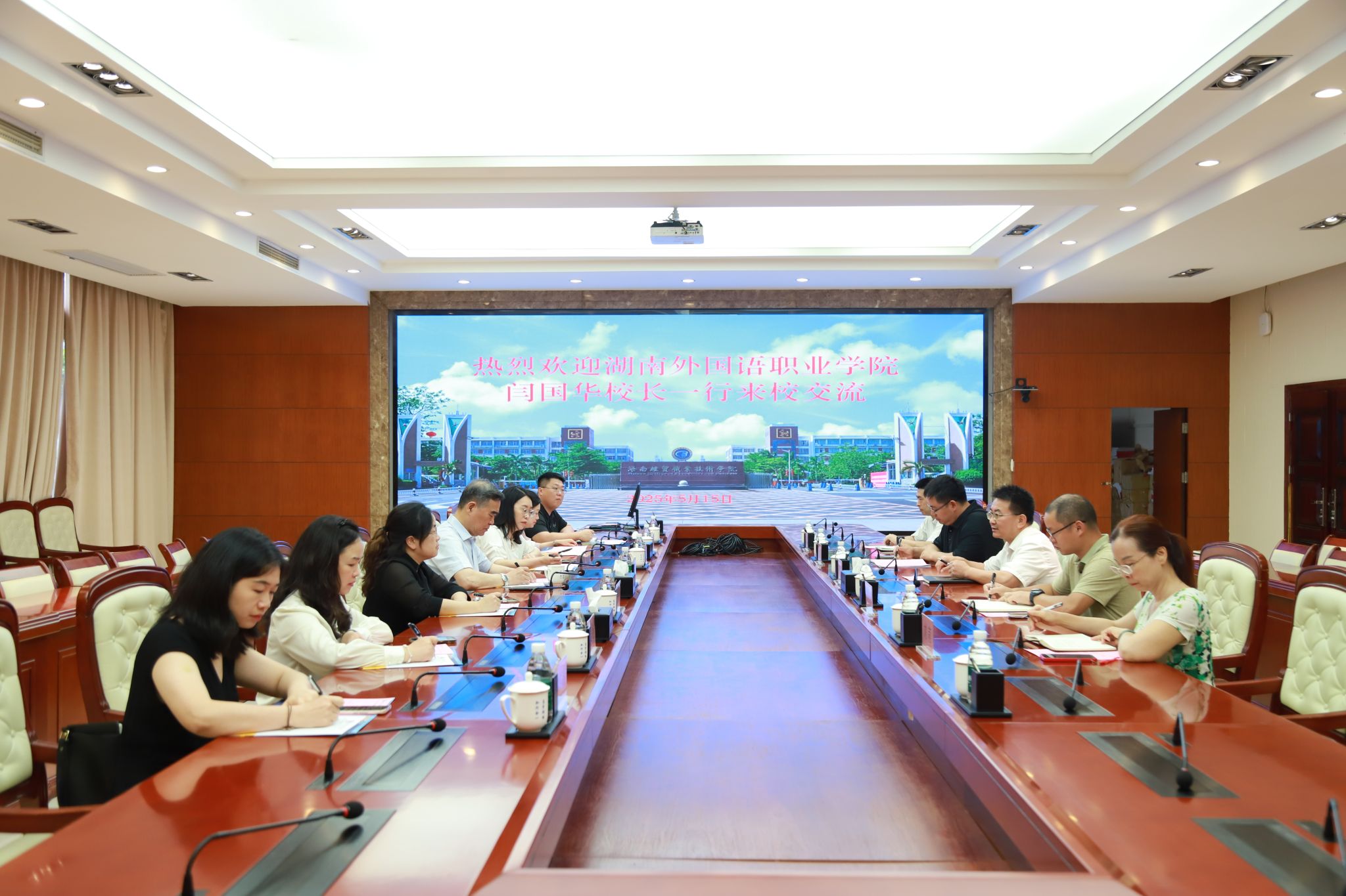 2025年5月15日,湖南外国语职业学院校长闫国华一行7人来到米兰milan官方网站,交流国际合作方面相关经验。学校党委副书记、校长崔昌华热情接待了闫国华一行。