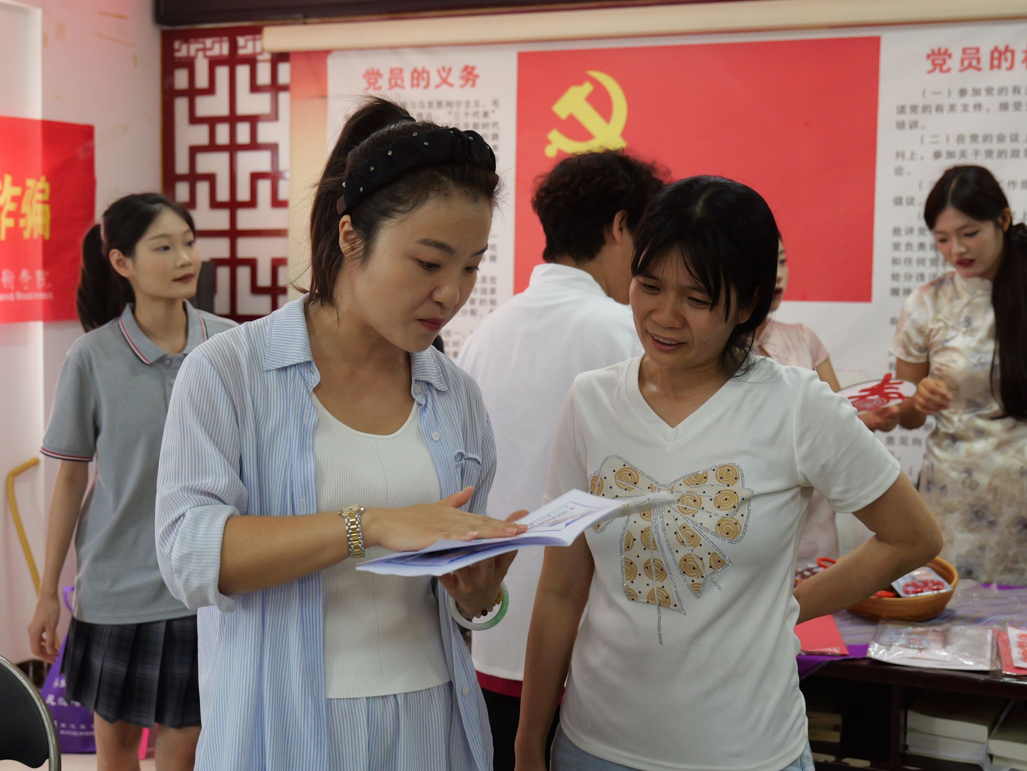 反诈防骗,敲响警钟。财务管理学院师生为大家分发“普及金融知识、防范金融诈骗”宣传册,并进行了有奖问答互动。宣传册以漫画形式,把知识点以通俗易懂的方式传递给居民,提醒大家日常生活中注意“金融陷阱”。