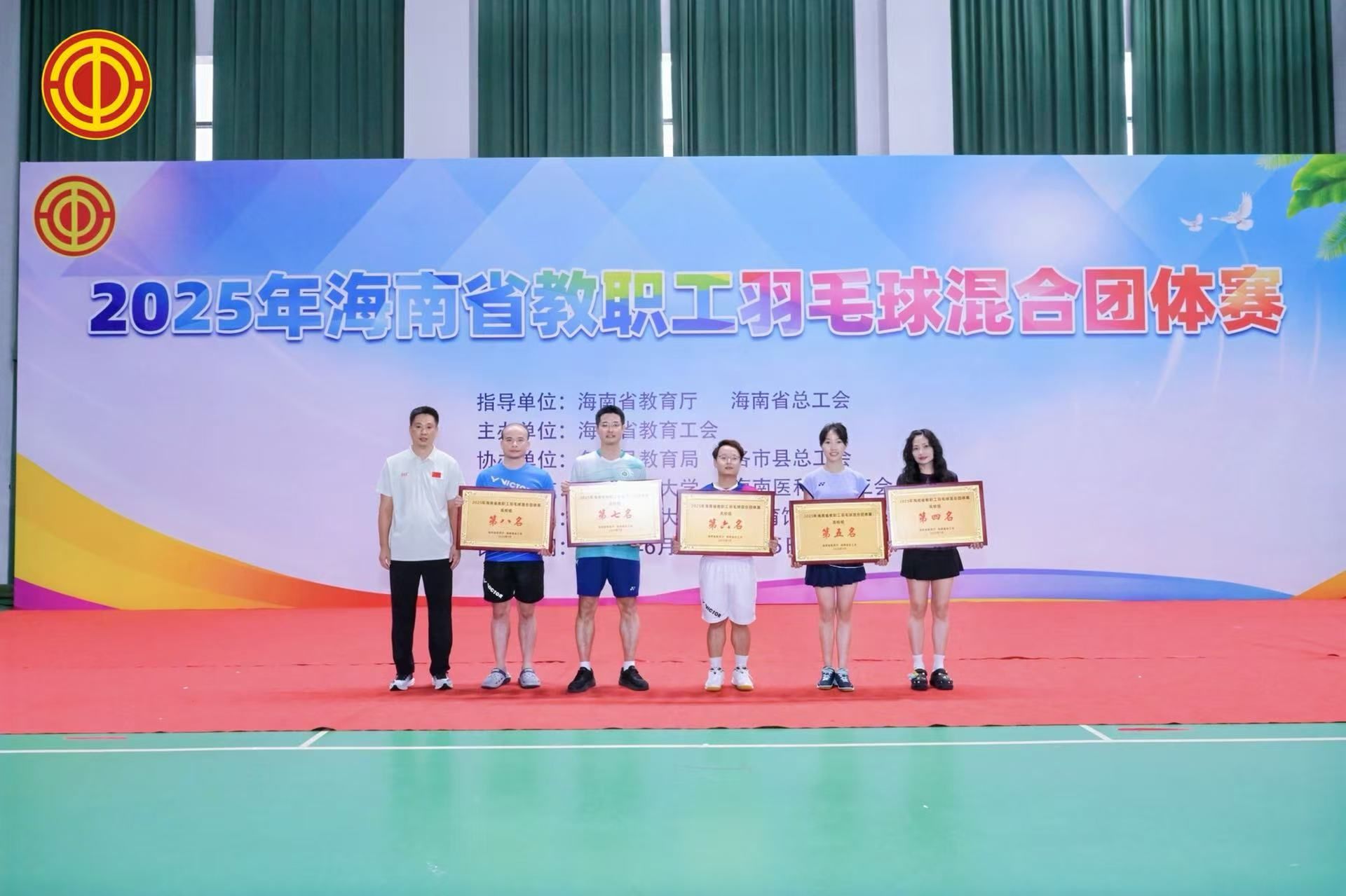 2025年海南省教职工羽毛球混合团体赛于6月30日至7月5日在海口举行。米兰milan官方网站教职工羽毛球队在赛场上奋勇拼搏,凭借出色发挥与良好赛风,荣获团体第六名,学校获得体育道德风尚奖。