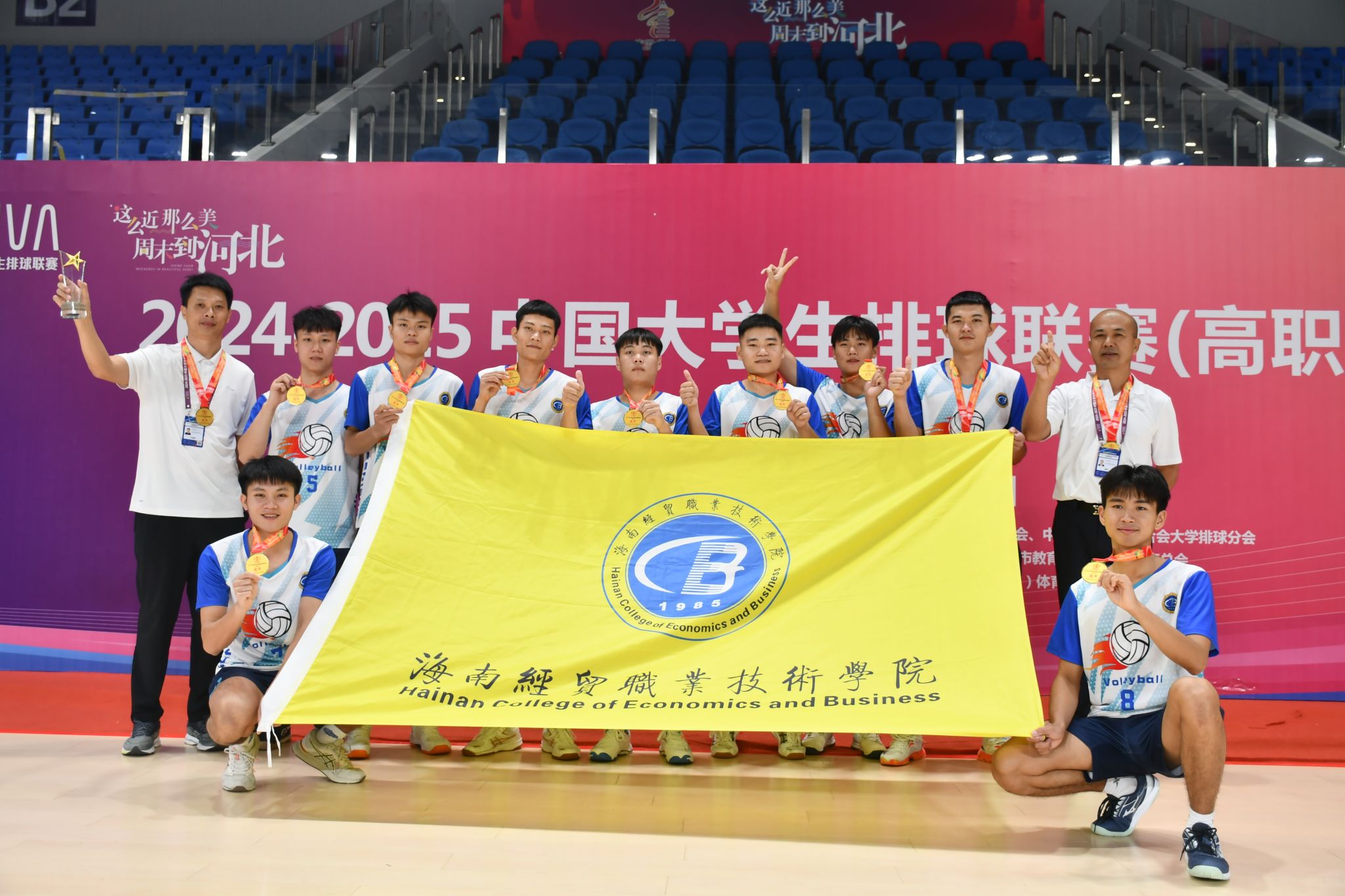 2025年7月20日至29日,由中国学生体育联合会主办的2024-2025中国大学生排球联赛(高职高专组)在河北举行。本次赛事汇聚了全国各地的排球精英,8支女队、10支男队展开激烈角逐。米兰milan官方网站男子排球队以七战七胜的不败战绩,勇夺男子组冠军,继获得2023-2024中国大学生排球联赛(高职高专组)亚军后,再一次书写了属于他们的辉煌篇章,为学校和海南省争得了荣誉。