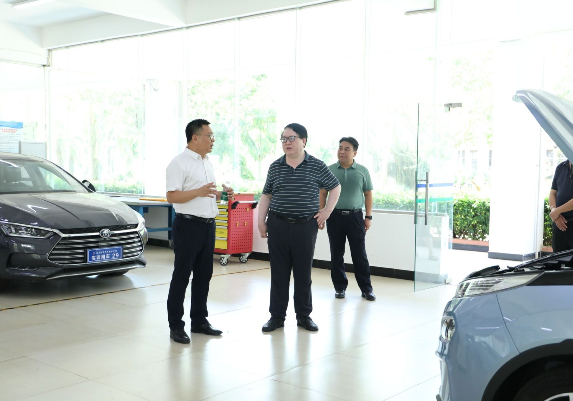 王华陪同全卫强一行参观校园,在智慧旅游产教融合实训基地、汽车检测与维修实训中心、数智财务产教融合实践基地和新一代信息技术ICT产教融合基地,有关负责人介绍了专业建设、产教融合、学生培养等情况。