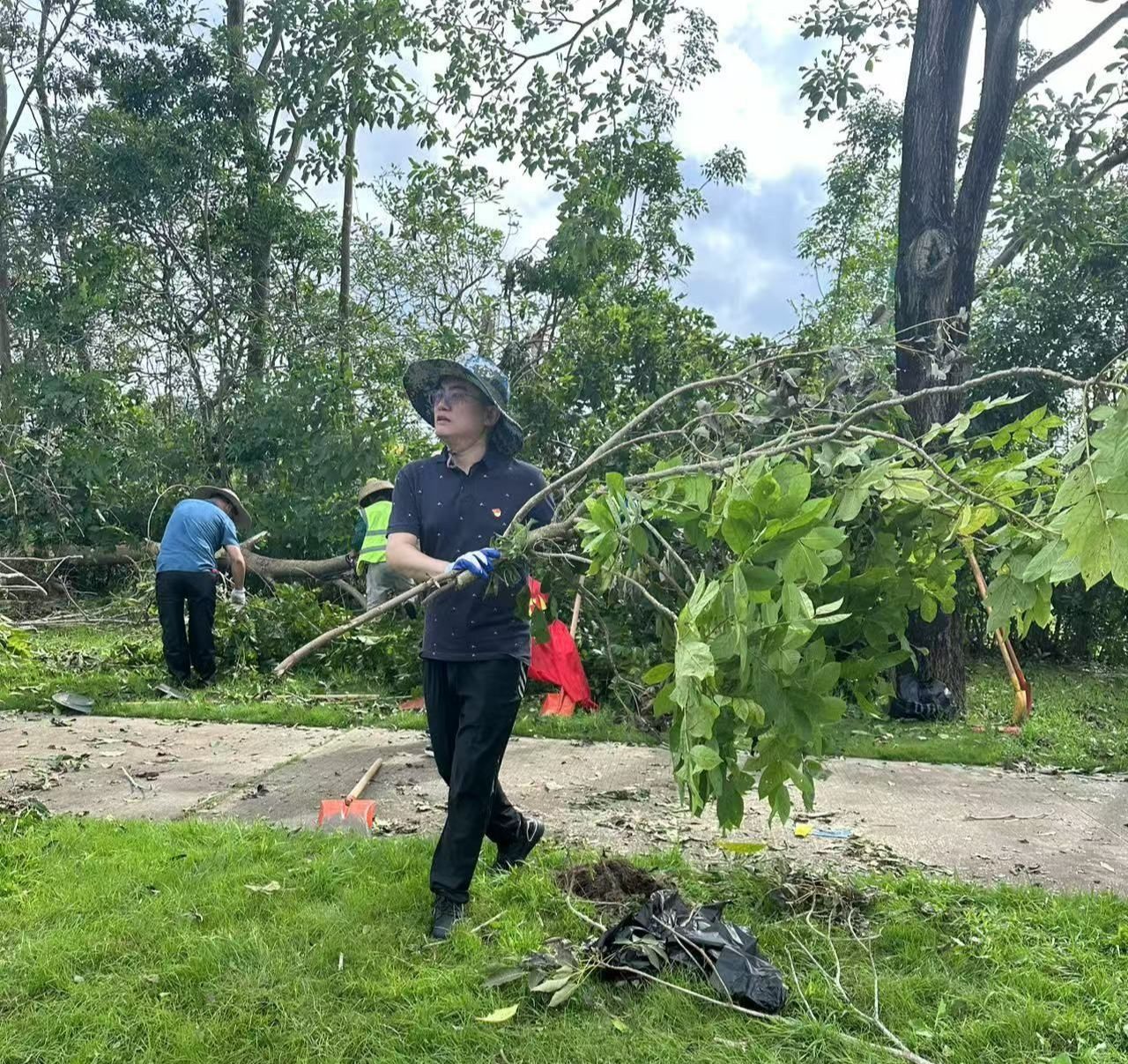 抵达英州镇后,三位党员干部迅速融入当地队伍,直奔受灾严重的街道区域,与各单位和街道干部并肩奋战。顶烈日、冒酷暑,清理断枝、搬运垃圾。经过连续两天奋战,累计完成6个任务点位的清障工作,疏通3条受阻道路,清运各类垃圾杂物35车,排除安全隐患3处,为当地恢复正常生产生活秩序扫清了关键障碍。