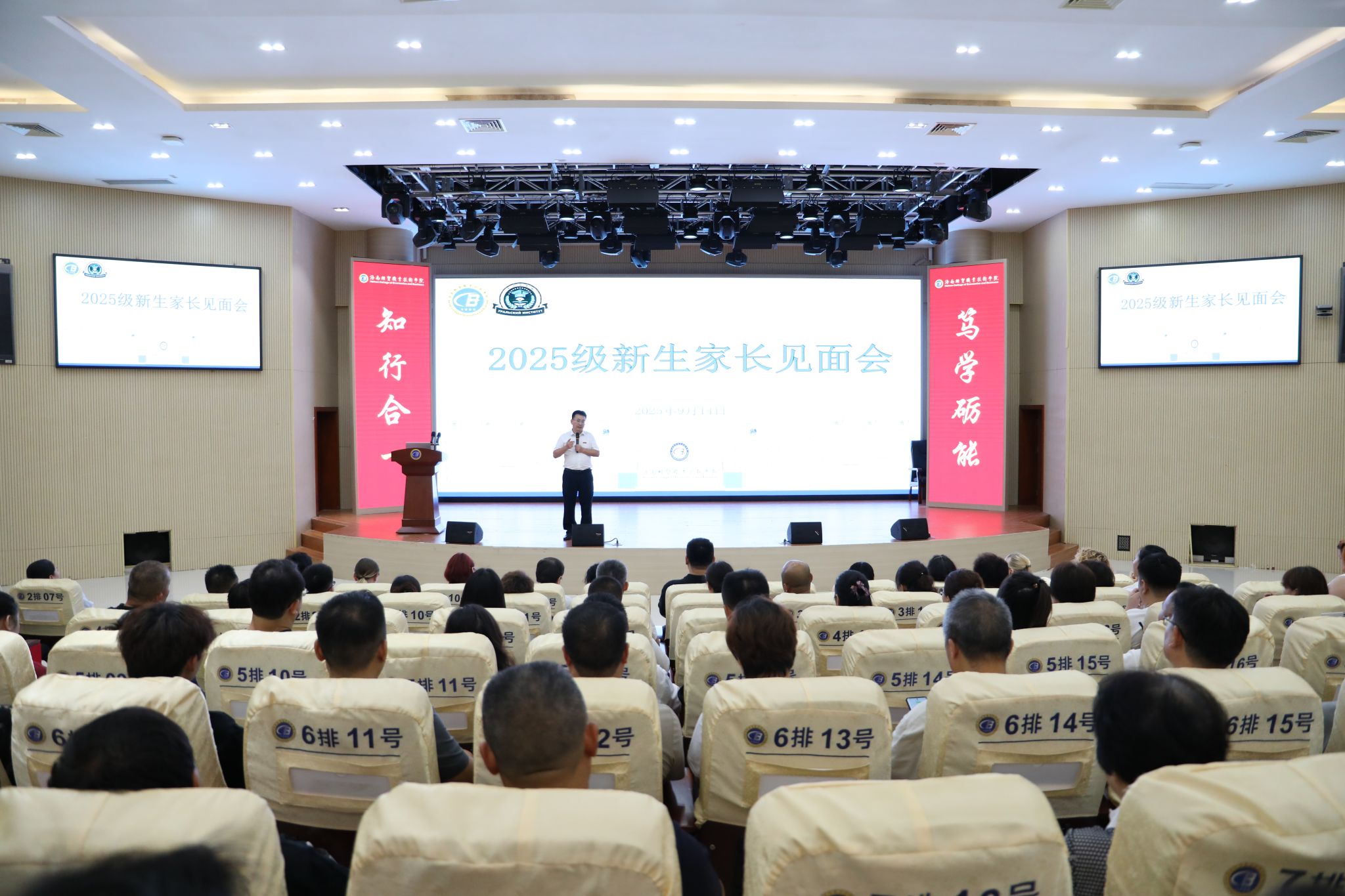 会上,乌拉尔学院党政主要负责人就学生管理、思政教育、校园安全及日常行为规范、学院整体发展概况、人才培养特色、师资力量等方面进行详细介绍。俄罗斯乌拉尔联邦大学阿列克谢·阿纳托利耶维奇教授向新生们送上祝福,希望同学们在大学期间能够收获新知,结识良友,开启人生新篇章。在专业介绍环节,旅游管理、大数据与财务管理、软件技术、机电一体化技术等专业负责人分别就本专业的培养目标、课程体系、就业方向及专业优势进行了细致解读,让新生和家长们对未来的学习方向有了更加清晰的认识。