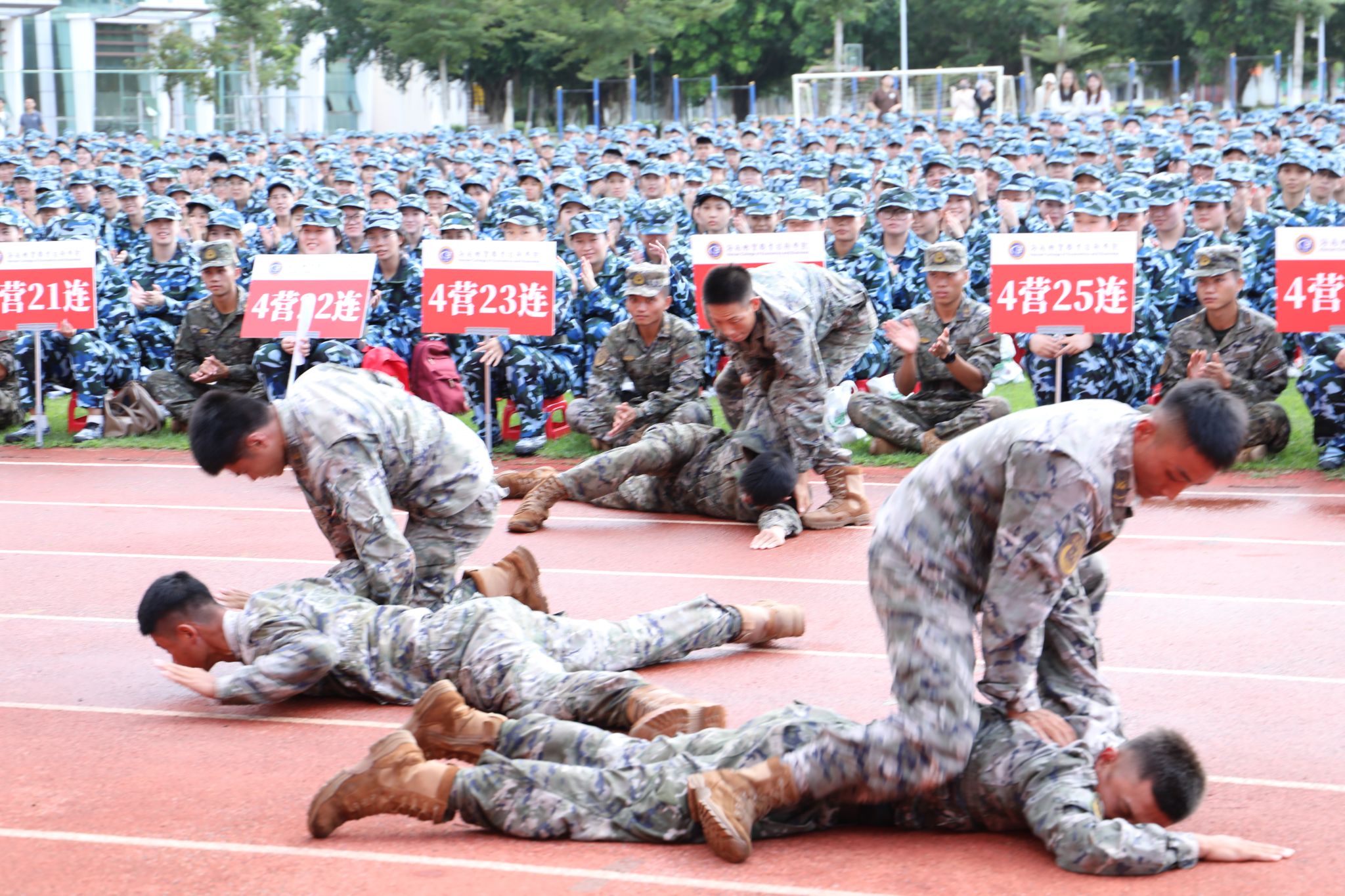 动员大会上,陈修焕向军训团授团旗。军训教官带来了倒功和擒摔课目等精彩的军事课目展示。