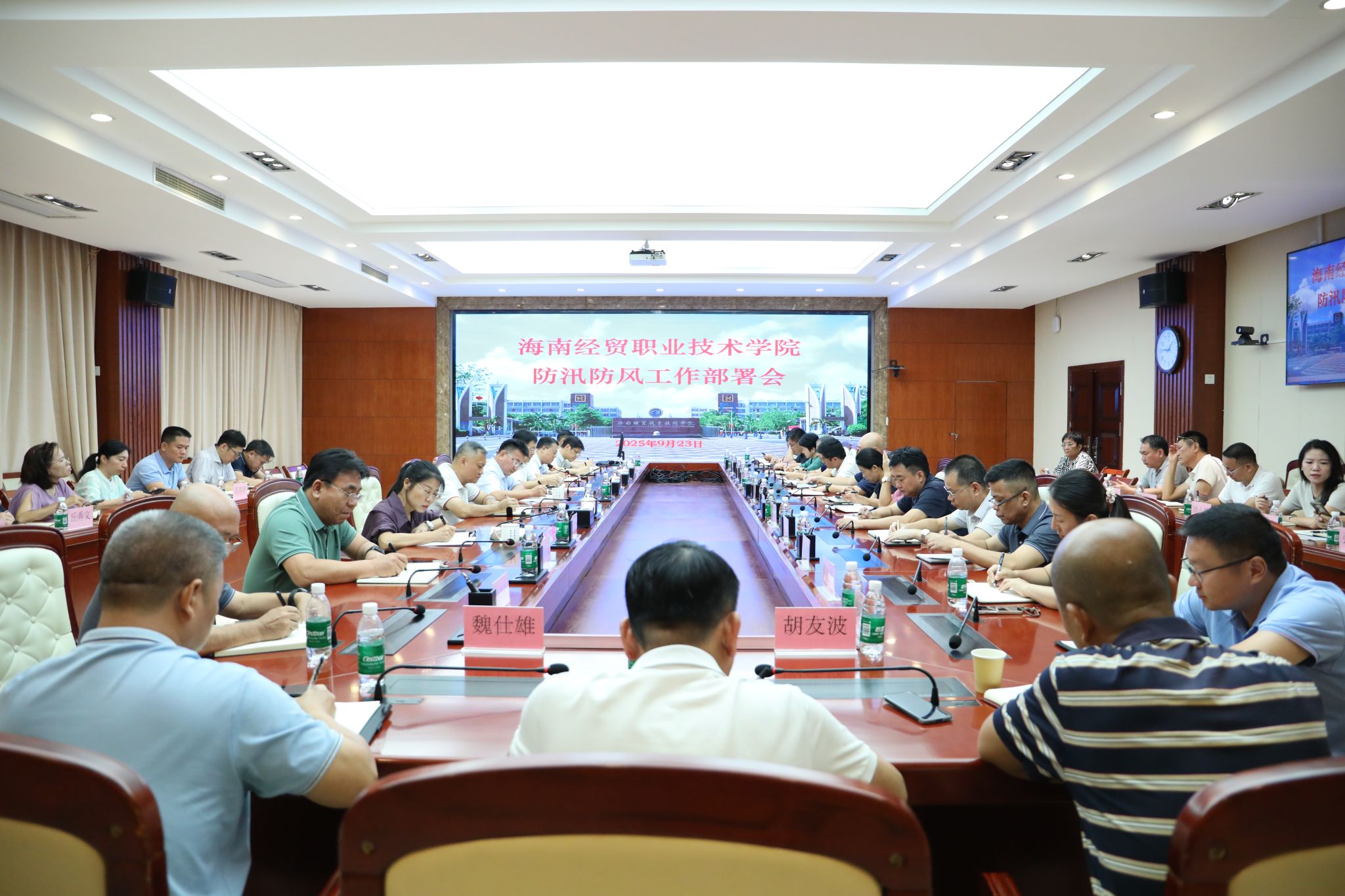 2025年9月23日,米兰milan官方网站召开防风防汛工作部署会,研判超强台风“桦加沙”校园灾害风险,部署防御应对工作。学校党委副书记、校长崔昌华,党委委员和校领导陈修焕、符史杭、李厚永、杨娜、田小林出席会议。