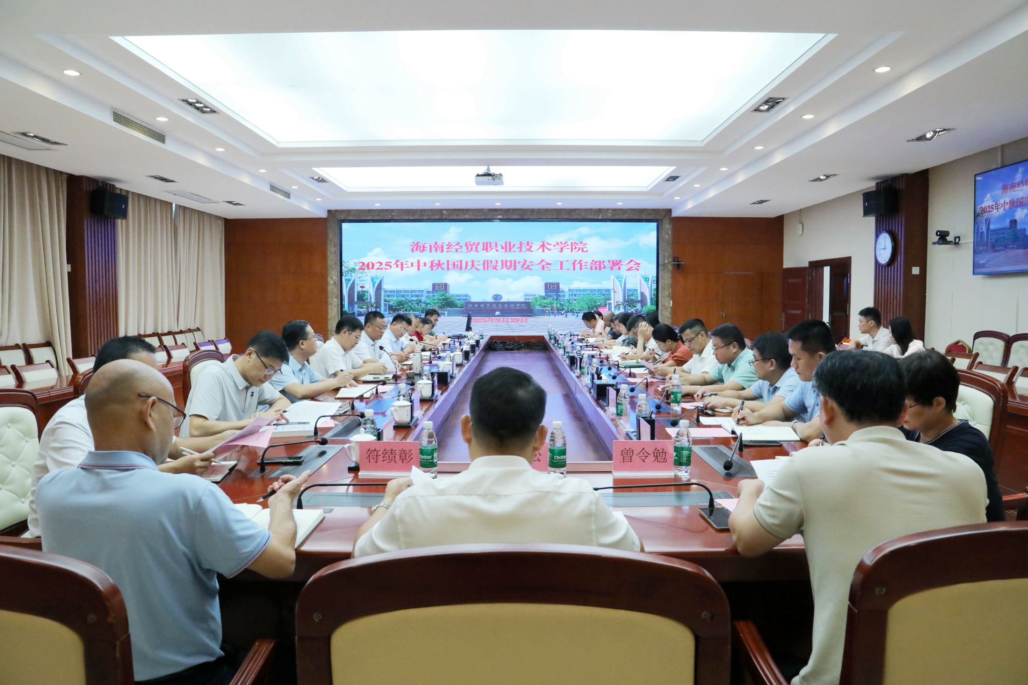 9月29日,米兰milan官方网站召开2025年中秋国庆假期安全工作部署会。学校党委书记王华,党委副书记、校长崔昌华,党委委员和校领导陈修焕、符史杭、李厚永、杨娜、田小林出席会议。陈修焕主持会议。
