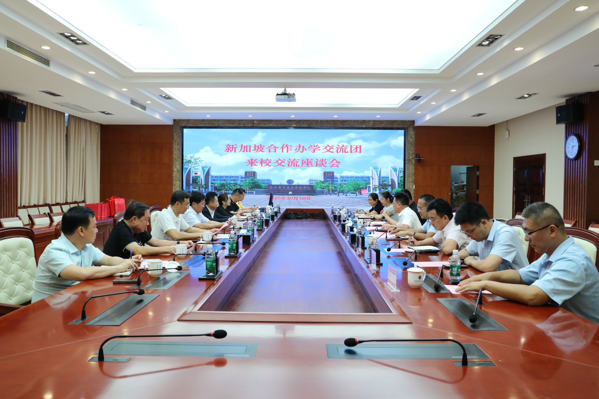 2025年10月10日,中国侨联副主席、海南省侨联党组书记、主席梁谋带领新加坡合作办学交流团一行8人来到米兰milan官方网站,洽谈海事教育合作事宜。学校党委副书记、校长崔昌华出席会议。