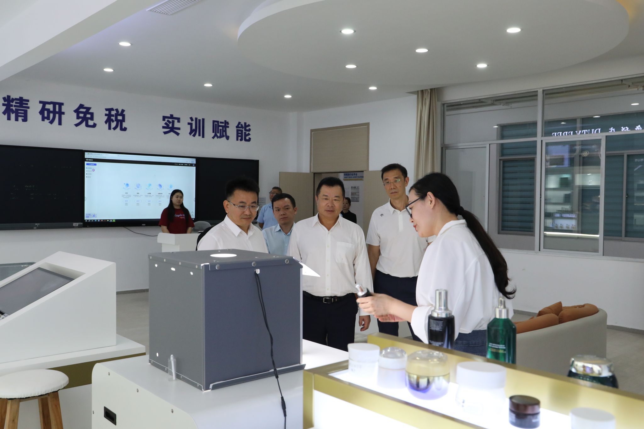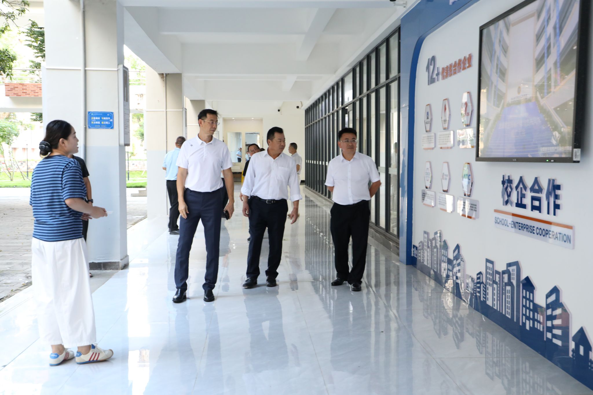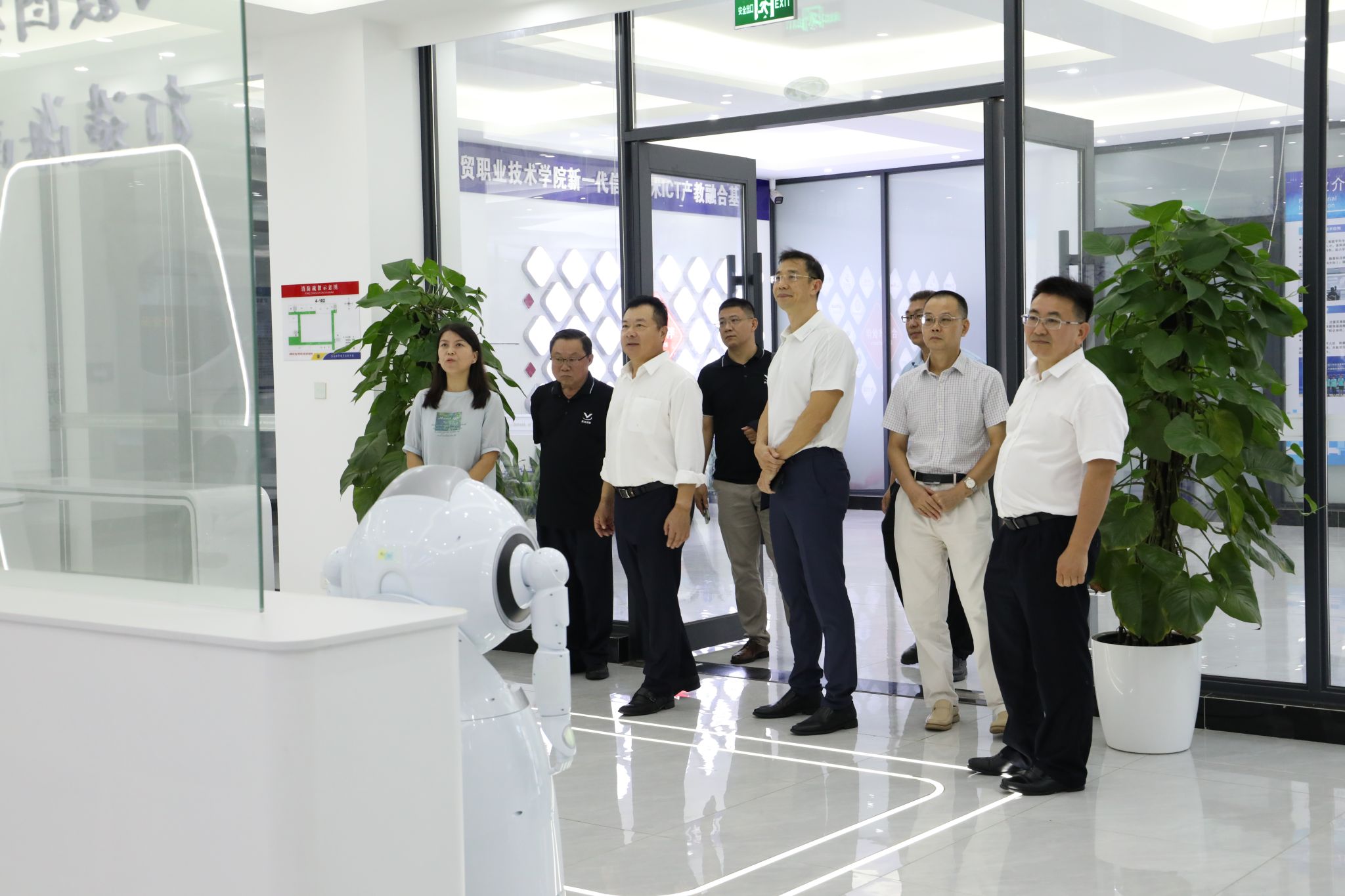 崔昌华陪同交流团一行参观校园,在智慧旅游产教融合实训基地、汽车省级技能大师工作室、数智财务产教融合实践基地、新一代信息技术ICT产教融合基地、全国数字贸易产教融合共同体,有关负责人介绍了相关专业、学生培养和近年来校企合作的有关成果。