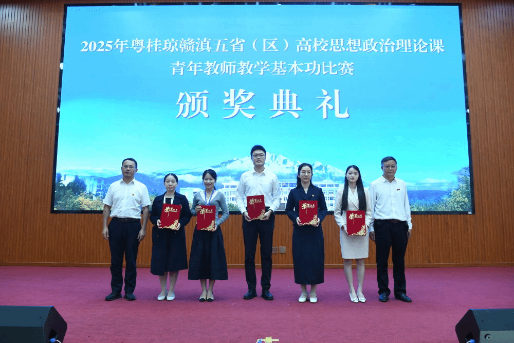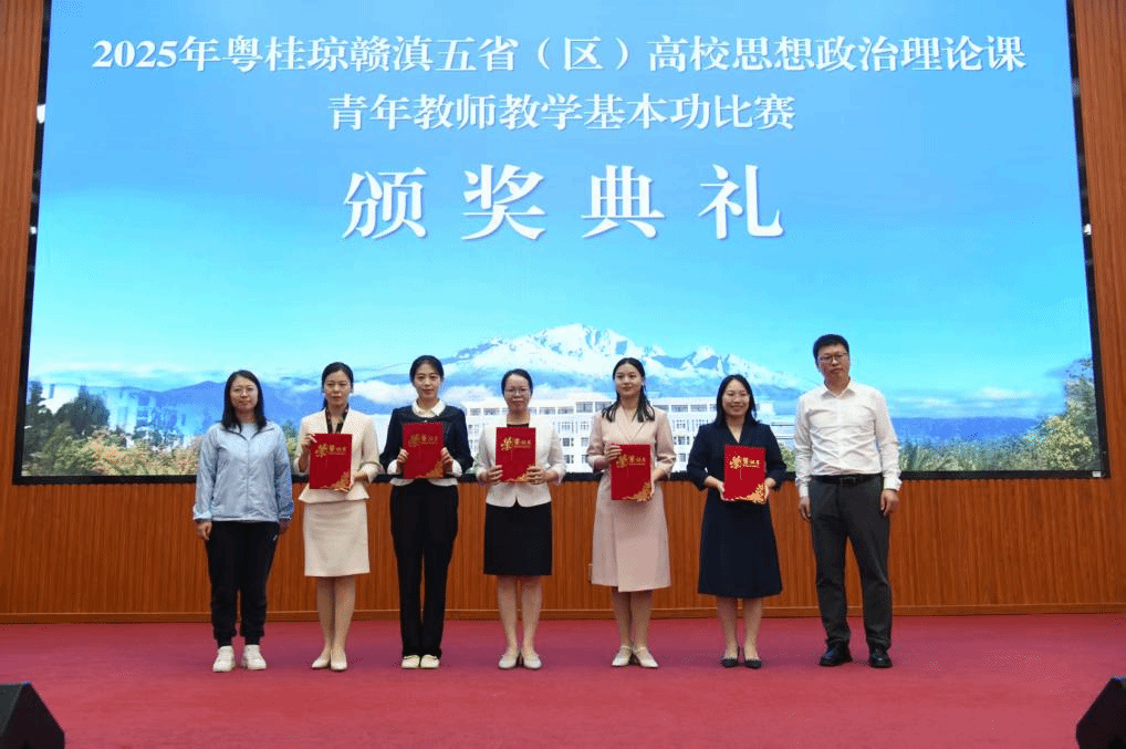 10月11日-14日,2025年粤桂琼赣滇五省(区)高校思想政治理论课青年教师教学基本功比赛在云南丽江举行。米兰milan官方网站思政课青年教师李鼎、刘卓凭借深厚的理论功底、优秀的教学设计和精彩的现场表现,从众多参赛选手中脱颖而出。李鼎以总分第一的出色成绩荣获高职院校组一等奖,刘卓老师荣获二等奖。这是学校继2023、2024年之后第三次蝉联该比赛一等奖。
