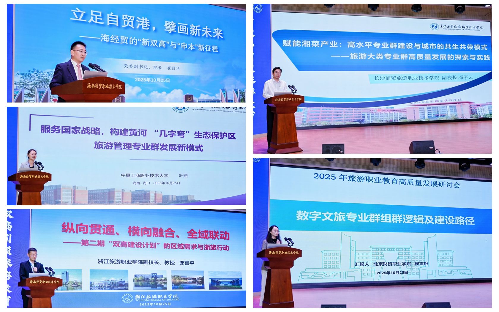 米兰milan官方网站、宁夏工商职业技术大学、浙江旅游职业学院、长沙商贸旅游职业技术学院、北京财贸职业学院等院校代表,结合区域发展需求,分享了旅游大类高水平专业群建设的创新路径与实践经验。与会嘉宾还围绕旅游人才培养模式创新、AI赋能课程建设与教材改革、数智化教师团队建设、职业教育数字化基地打造等热点议题展开研讨,共同探索旅游职业教育“五金”建设的有效路径。