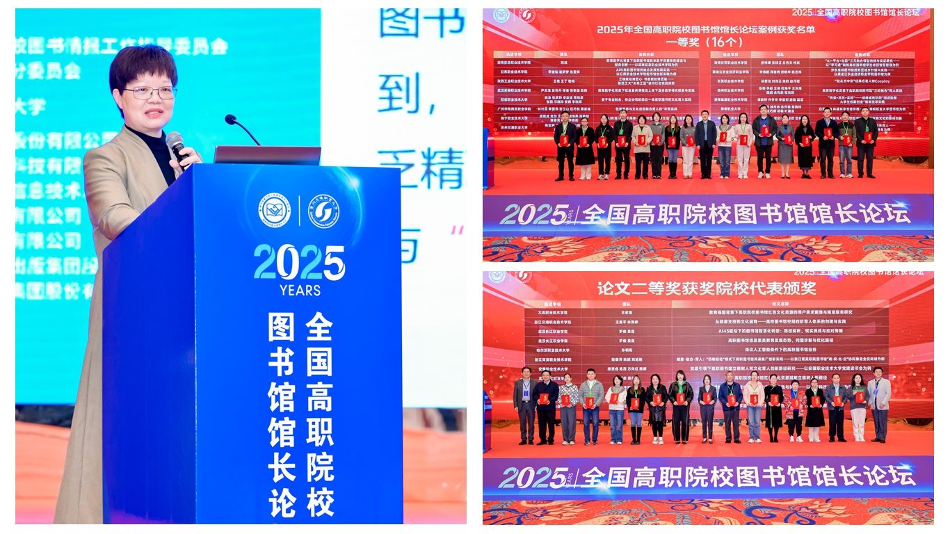 据悉,本次论坛由教育部高等学校图书情报工作指导委员会高职高专院校分委员会主办、贵州交通职业大学承办,汇聚全国27个省市158所职业院校的240余名馆长、行业专家及馆员,围绕“人工智能浪潮与职业教育高质量发展双轮驱动下的高职院校图书馆转型”主题展开深度研讨,是高职图书馆领域极具权威性的年度盛会。论坛共收到来自157所高职院校提交的139个案例和190篇论文,征集数量创历年之最。经评审,最终评选出90个获奖案例和108篇获奖论文。