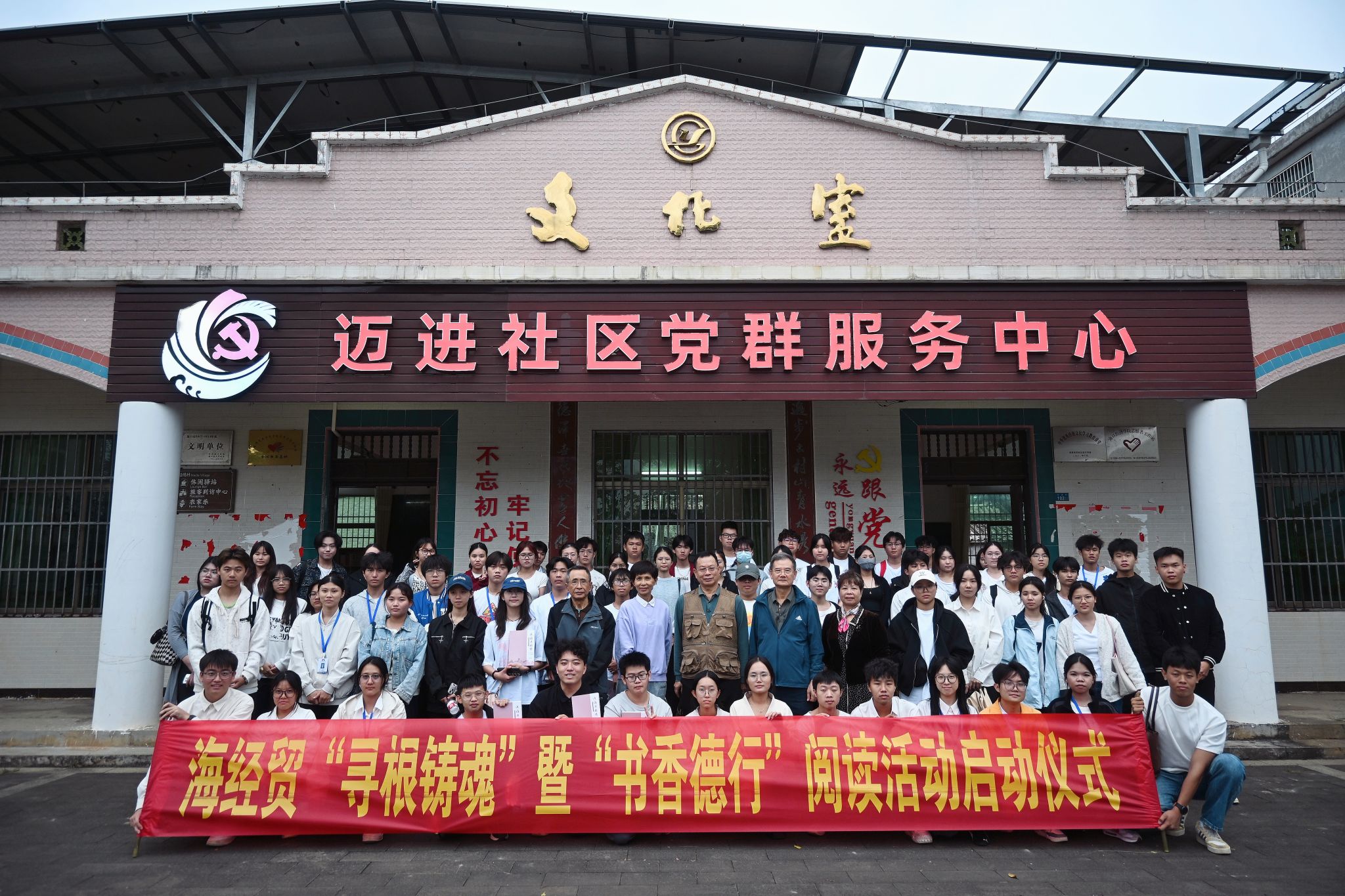 10月28日,米兰milan官方网站关工委联合团委、图书馆及各二级学院,在学校与海口市迈进社区共建的“中华优秀传统文化教育传承基地”迈德村,举办2025年“寻根铸魂”暨“书香德行”阅读活动启动仪式。