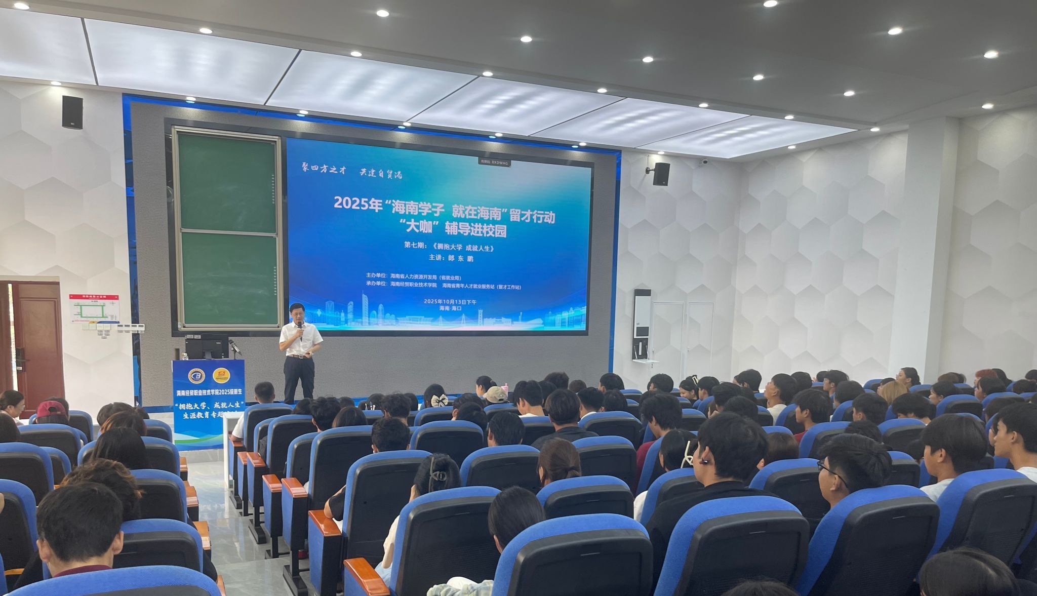 郎东鹏围绕“大学生涯三问”“大学生涯的八个主题”等内容进行系统讲解。他结合多年生涯教育研究经验与典型案例,深入浅出地解析职业发展逻辑。“职业不仅是谋生手段,更是实现人生价值的核心载体。确立人生目标后,需以职业为锚点,精准匹配自身能力与岗位需求,在创造社会价值的过程中实现自我超越。”他鼓励同学们,要充分依托米兰的专业优势,紧盯海南自贸港特色产业布局,提前规划职业路径,将个人成长轨迹与自贸港建设的时代机遇深度融合。