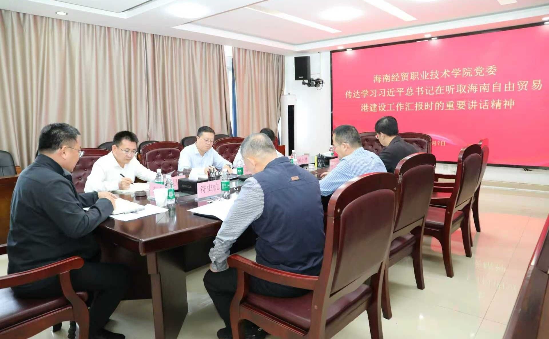 会议要求,一要深刻领悟、准确把握习近平总书记重要讲话精神的核心要义和精神实质。紧扣海南自贸港建设战略定位,锚定海南自贸港建设核心方向,将讲话精神转化为推动学校高质量发展的具体举措。二要深化教育综合改革,深化产教融合。将改革与学校中心工作、巡视整改任务紧密结合,聚焦自贸港重点产业布局,确保人才培养、学科建设、校企合作等工作精准对接海南自贸港发展需求,稳步推进、落地见效。三要科学谋划学校“十五五”规划,夯实发展根基。立足党的二十届四中全会战略部署,结合自贸港建设长远需求,系统谋划学校未来五年发展蓝图,明确目标任务、重点领域与实施路径,为学校持续高质量发展筑牢基础。四要坚持全面从严治党,守住安全底线。压实管党治党政治责任,牢固树立底线思维,统筹发展和安全,防范化解各类风险隐患,着力营造风清气正的政治生态。五要强化宣传贯彻落实,凝聚奋进合力。要把学习宣传贯彻习近平总书记重要讲话精神作为当前和今后一个时期的头等大事和首要政治任务,引导党员干部及学校师生与海南自贸港建设、学校发展同频共振、同向同行,担当作为、扎实奋斗。