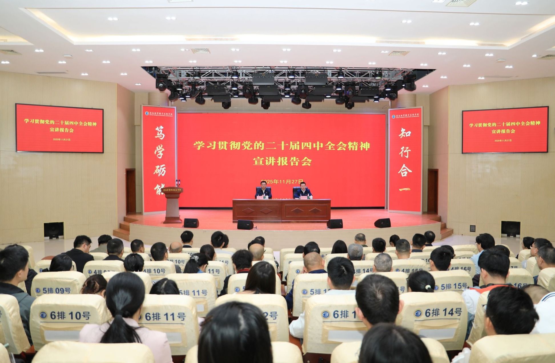 2025年11月27日,学习贯彻党的二十届四中全会精神宣讲团成员、米兰milan官方网站党委书记王华为师生宣讲党的二十届四中全会精神,要求全校党员干部和广大师生深入学习领会、全面准确把握全会精神的重大意义和核心要义,把智慧和力量凝聚到落实全会确定的各项目标任务和推动学校高质量发展上来。学校党委副书记、校长崔昌华主持会议。