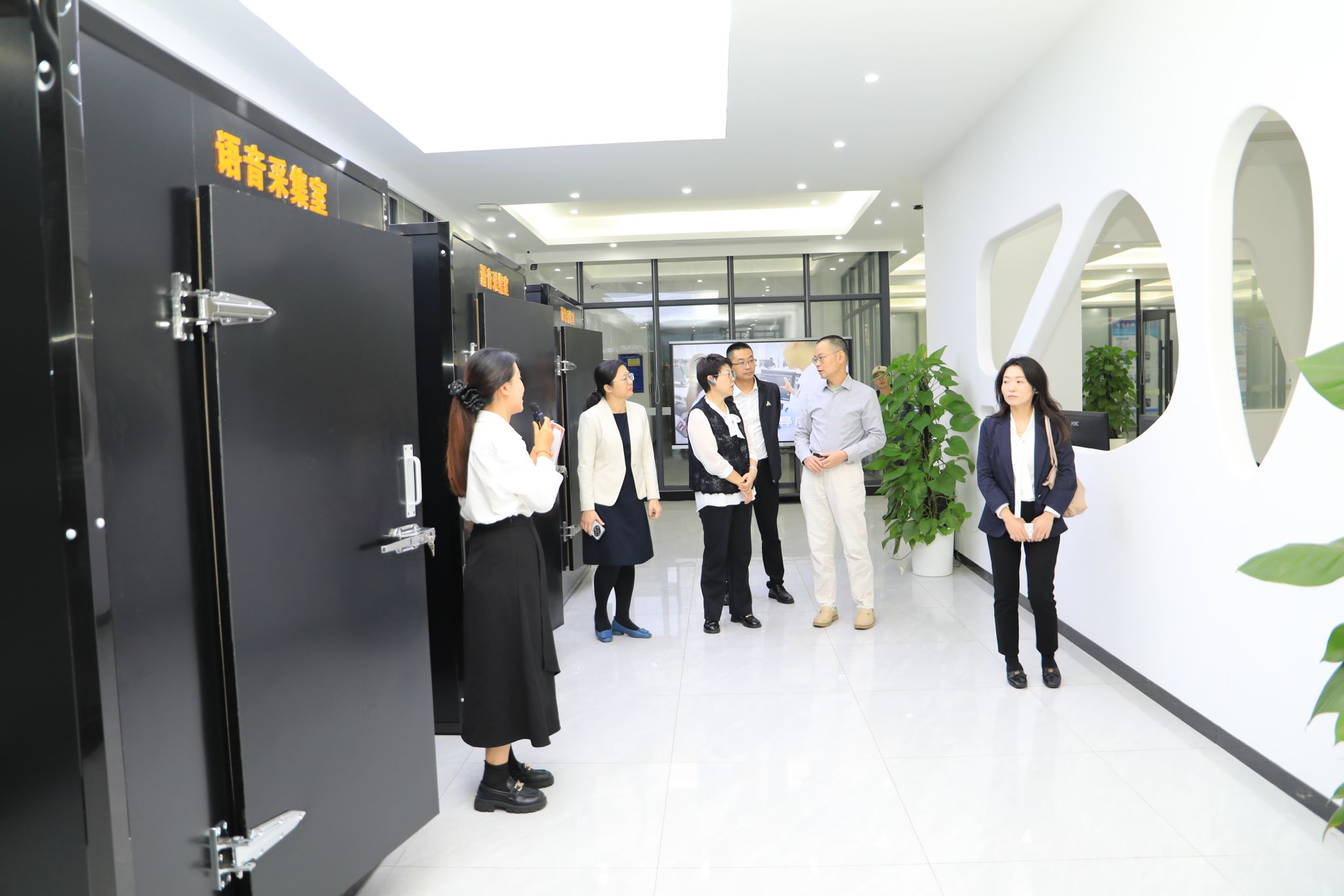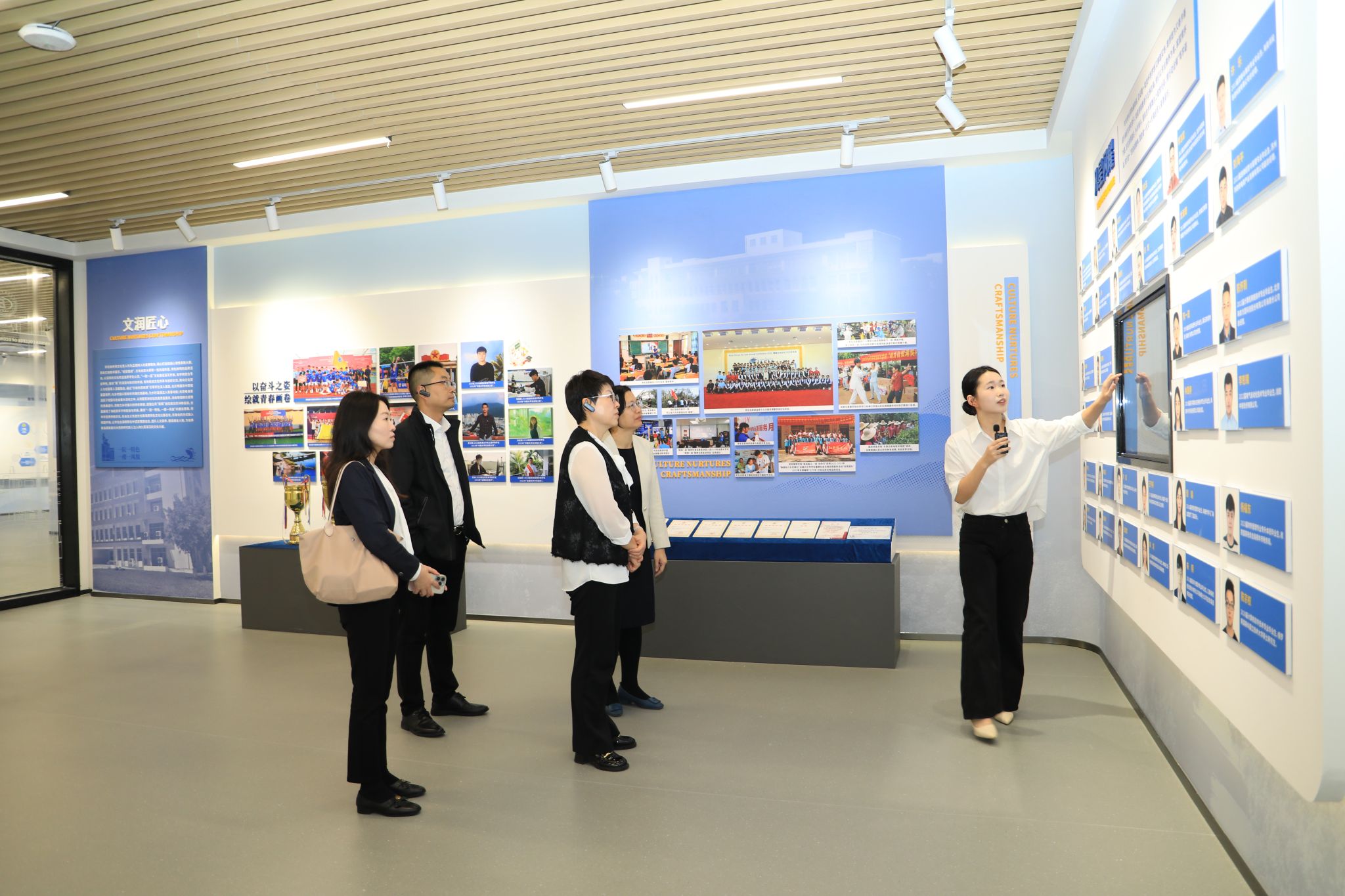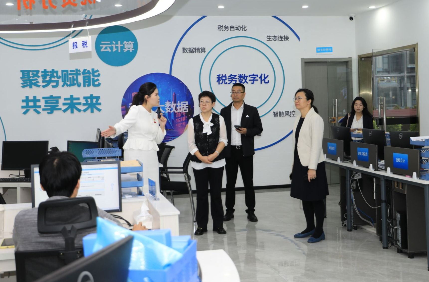 闫景丽一行参观了学校校史展览馆、智慧旅游产教融合实训基地、数智财务产教融合实践基地、新一代信息技术ICT产教融合基地、eWTP产业学院,有关负责人介绍了校企合作模式、实训教学开展、人才培养成果等方面的情况。