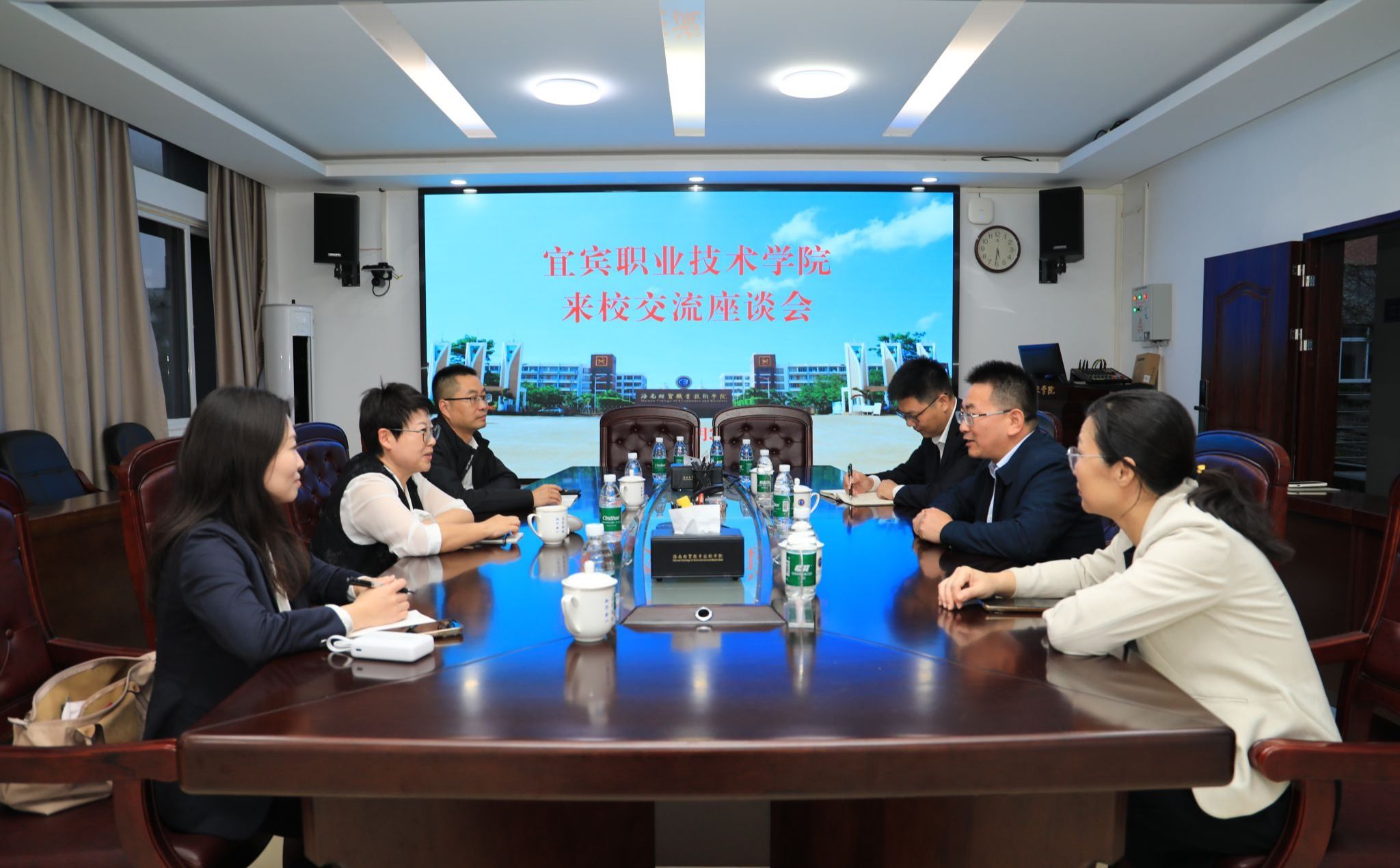 2025年12月3日,宜宾职业技术学院党委副书记闫景丽一行3人来到米兰milan官方网站,交流“双高”建设、产教融合等办学经验。学校党委副书记、校长崔昌华热情接待了宜宾职业技术学院一行。
