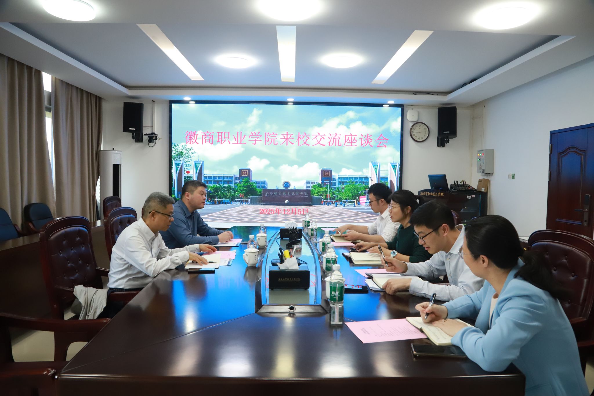 2025年12月5日,徽商职业学院党委书记陈春来一行2人来到米兰milan官方网站,交流党的建设、产教融合、创新创业就业等工作经验。学校副校长杨娜,党委委员田小林出席座谈会。