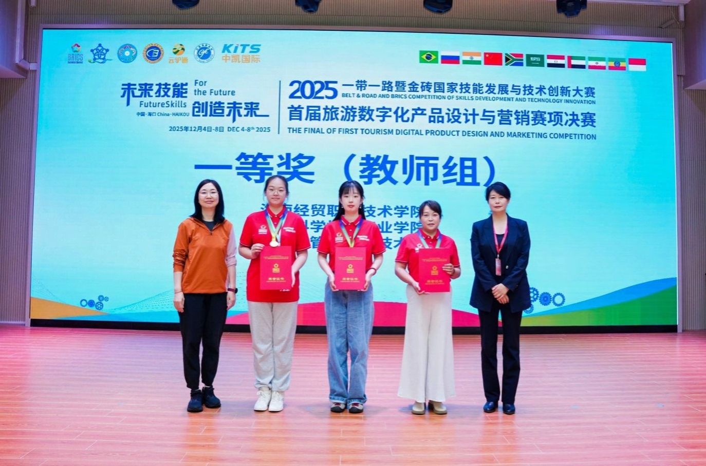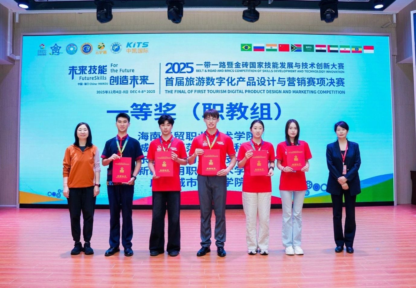 2025年12月5日-7日,一带一路暨金砖国家技能发展与技术创新大赛首届旅游数字化产品设计与营销赛项全国总决赛在米兰milan官方网站顺利举行。全国66支优秀参赛队伍齐聚海口,以数字技术为笔、以文旅创意为墨,在椰城上演一场“数字+旅游”的技能盛宴。米兰milan官方网站在本次比赛中荣获职教组和教师组两个一等奖。