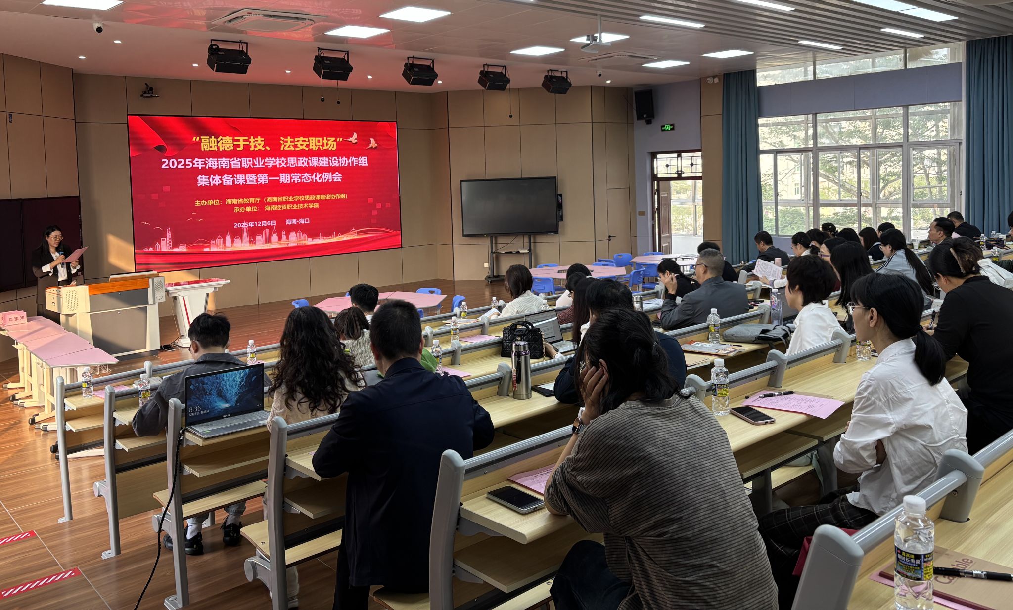 近日,2025年海南省职业学校思政课建设协作组“融德于技、法安职场”集体备课会及教学交流活动在米兰milan官方网站举办,全省20多所职业院校的思政课骨干教师、教学负责人及专家学者参加。