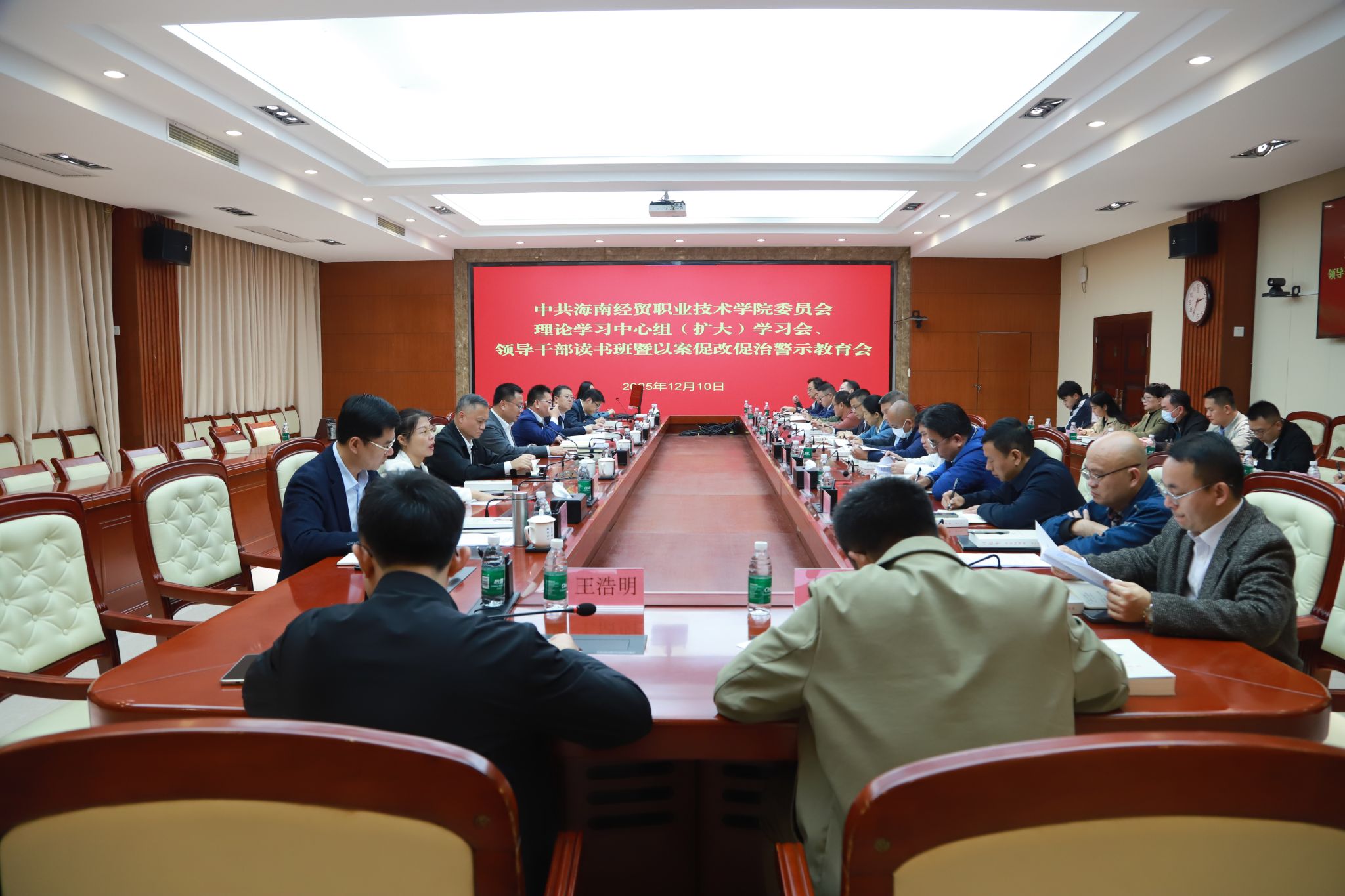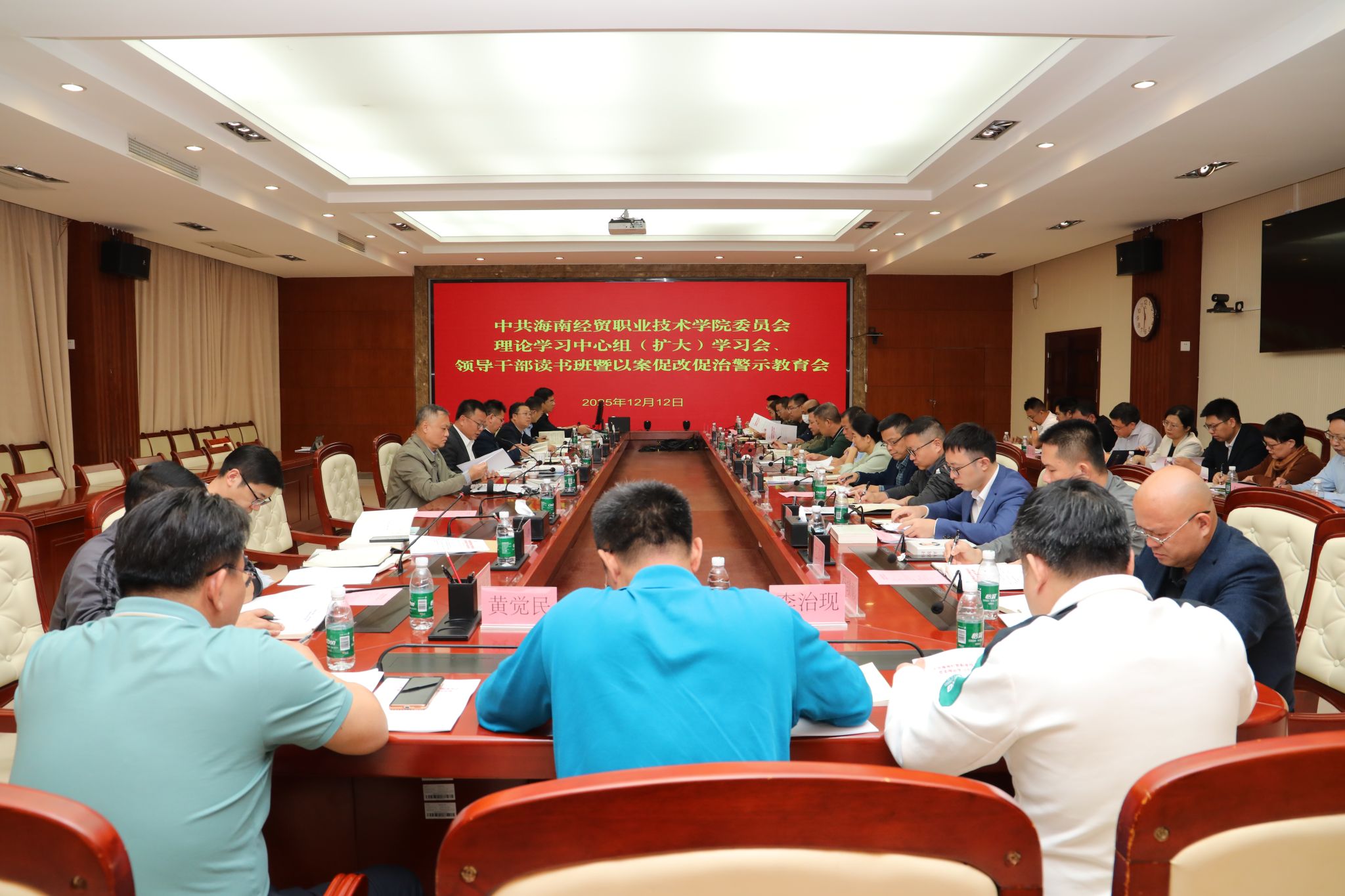 2025年12月10日-12日,米兰milan官方网站举办党委理论学习中心组(扩大)学习会、领导干部读书班暨以案促改促治警示教育会,以专题辅导、现场考察、个人自学、观看视频、集中学习与专题研讨等方式,认真学习贯彻《习近平谈治国理政》第五卷、党的二十届四中全会精神、习近平总书记听取海南自由贸易港建设工作汇报时的重要讲话精神、省委八届八次全会精神和省委有关以案促改促治工作要求。学校党政班子成员参加学习。