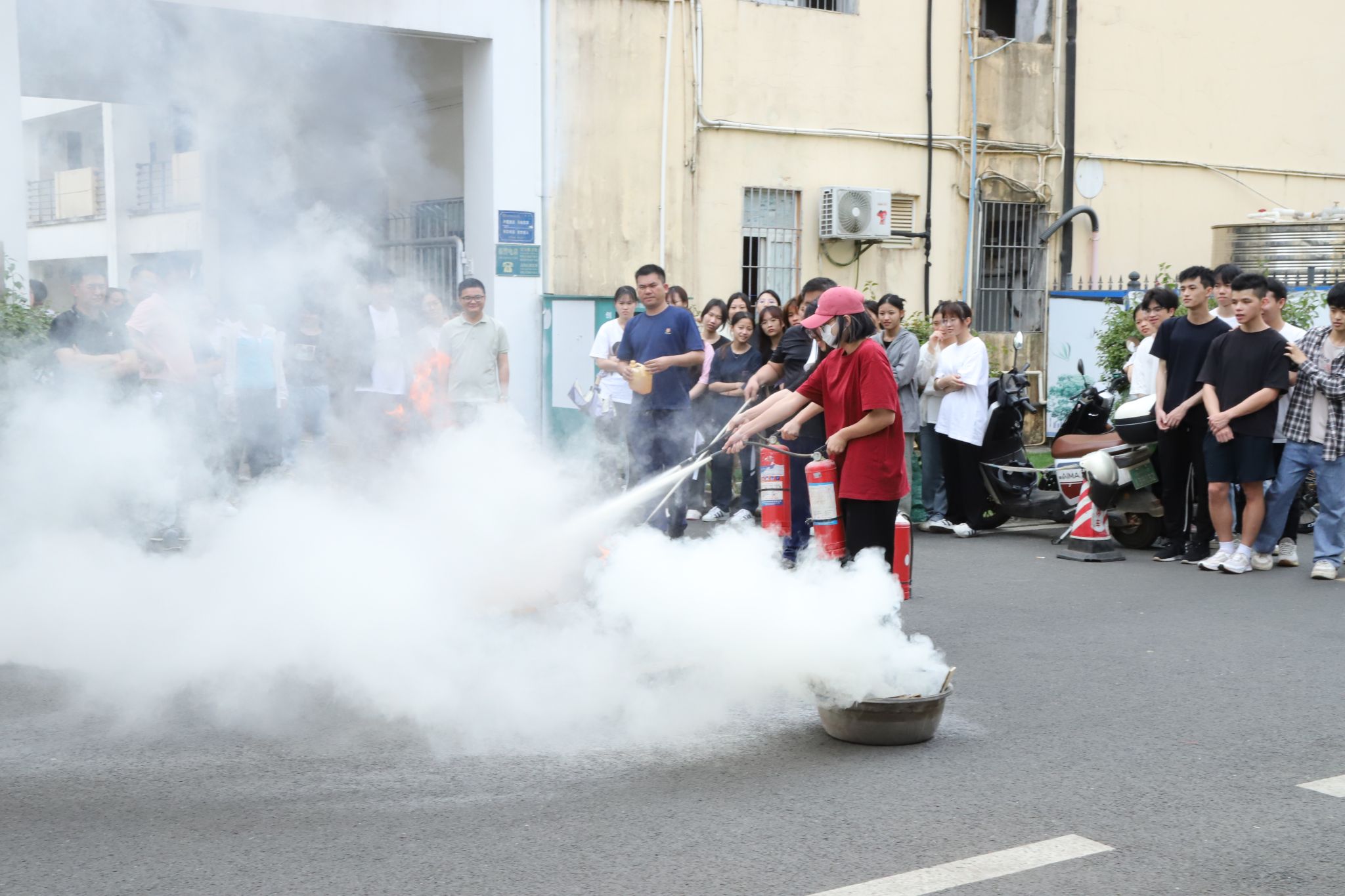 应急宣传教员符俊生讲解了灭火毯、干粉灭火器、防毒面具的使用及操作方法,用多媒体视频和图文的形式向大家介绍了常见的家庭起火、交通工具起火、宿舍起火的原因及造成的危害,并结合海南省近期发生的火灾案例,对师生进行警示教育。在学生宿舍楼,师生们实地开展了灭火和逃生疏散演练。