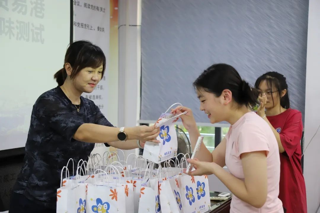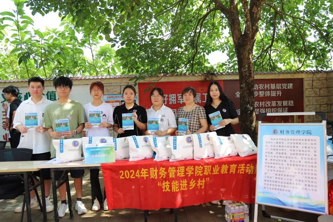 财务管理学院师生将准备好的《支持乡村振兴税费优惠政策指引》手册分发给村民朋友们。“农业服务免征增值税”“从事‘四业’的个人暂不征收个人所得税”,冯晨雨等同学以“科普讲解+趣味问答”的形式,向大家普及财税知识。村民们积极互动并领取奖品。