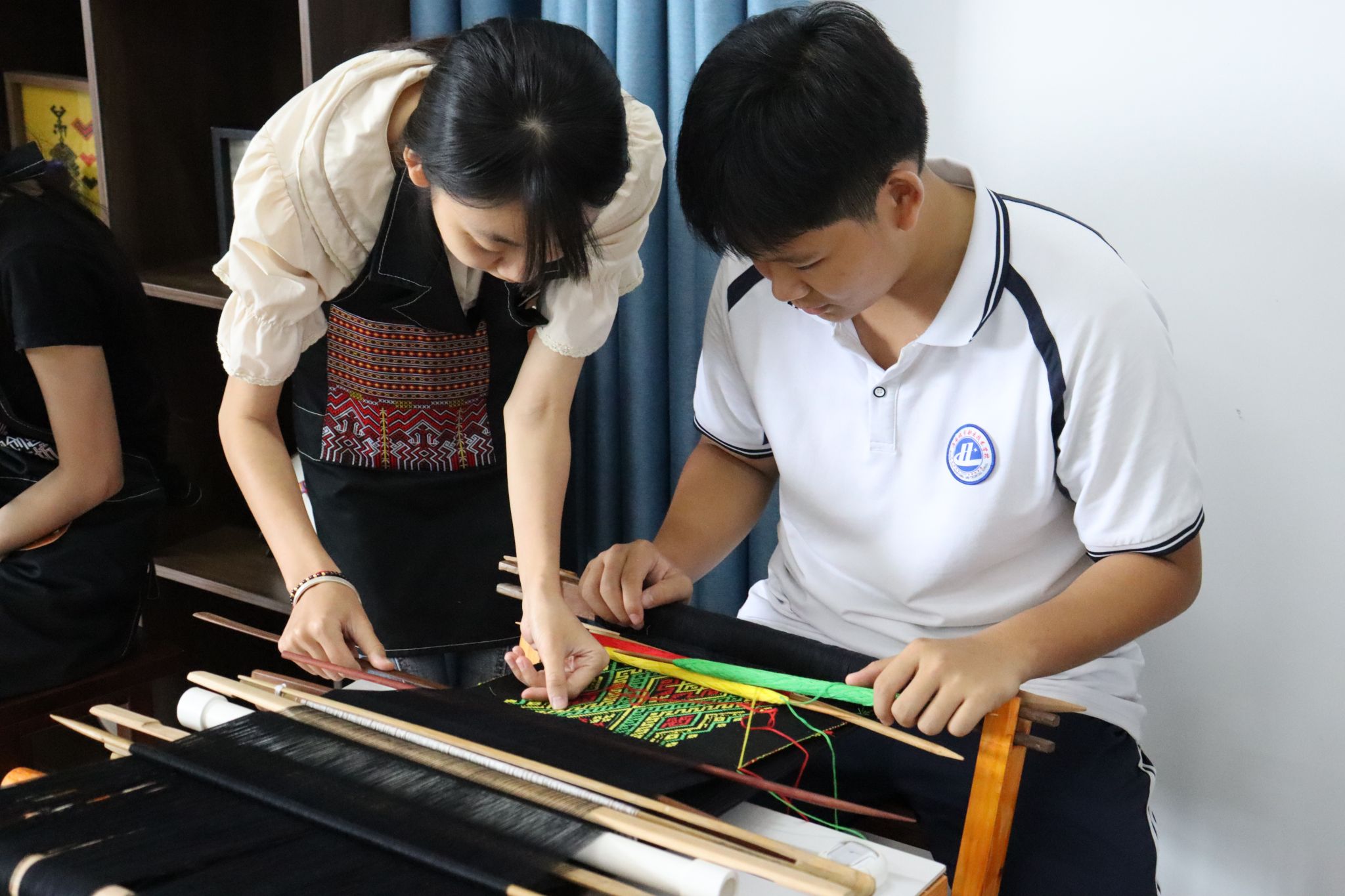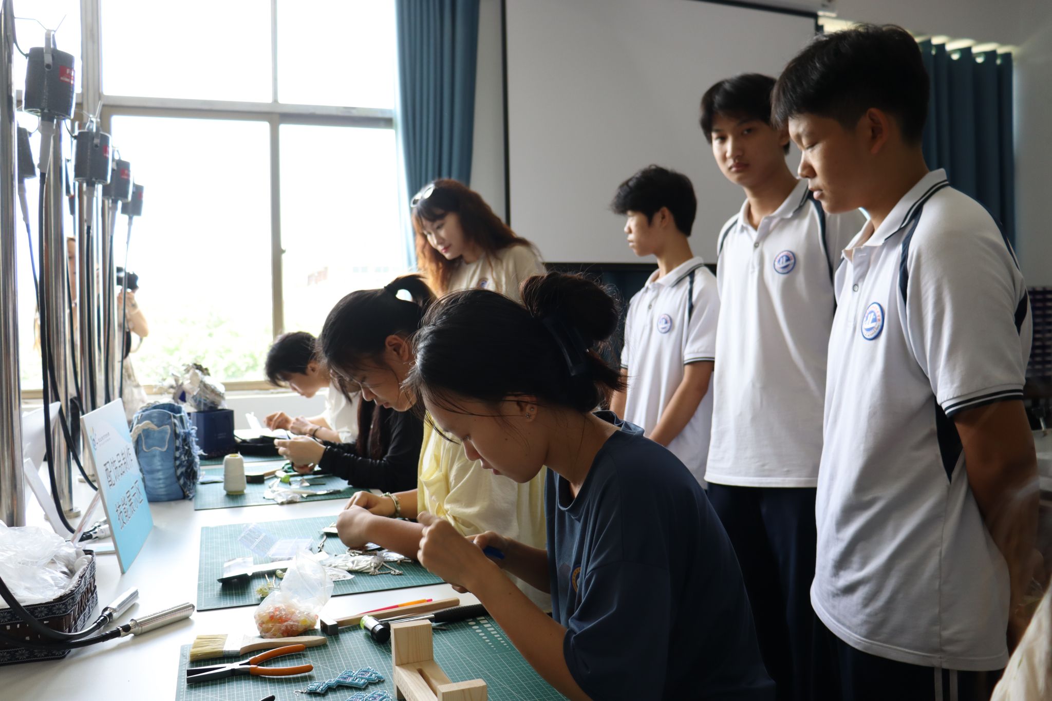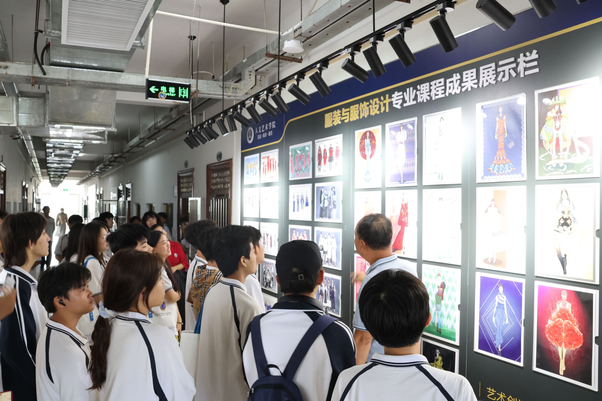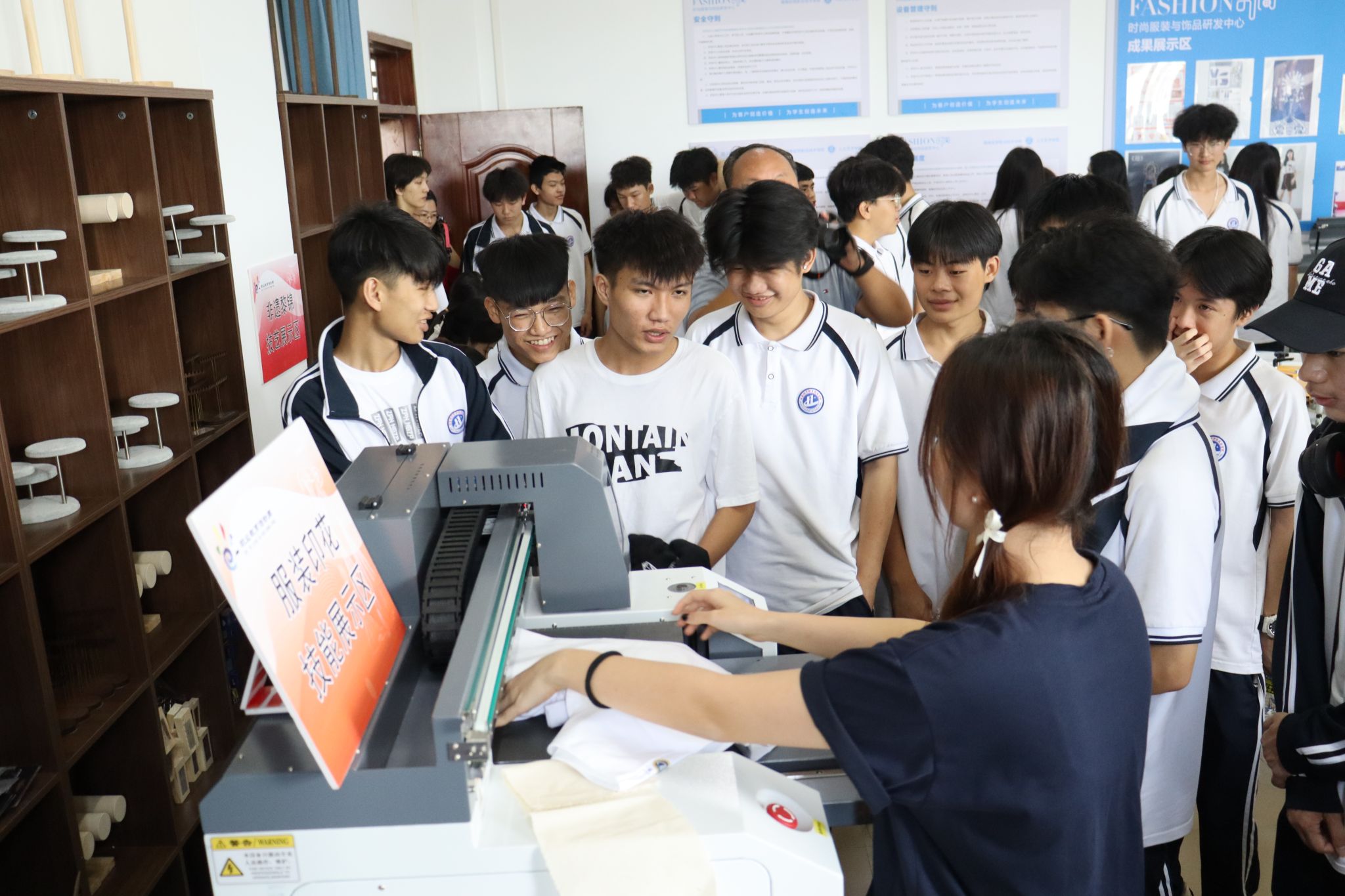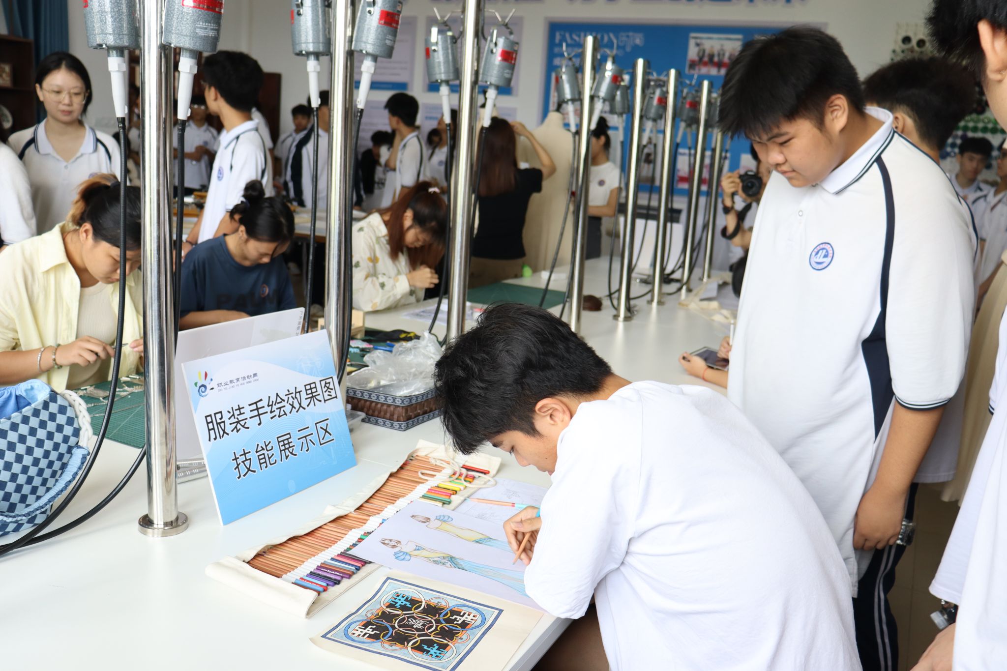 “这位姐姐为大家展示的是黎族织锦。那位小哥哥正在进行服装建模设计……”海南城市职业技术学校的同学们来到人文艺术学院,学长学姐们正在这里展示他们的“拿手绝活”。同学们在服装印花技能展示区、非遗黎锦技艺展示区、服装陈列设计技能展示区等展位观看了米兰学子的优秀作品并积极参与互动,真切感悟到了服装与服饰设计专业的魅力。