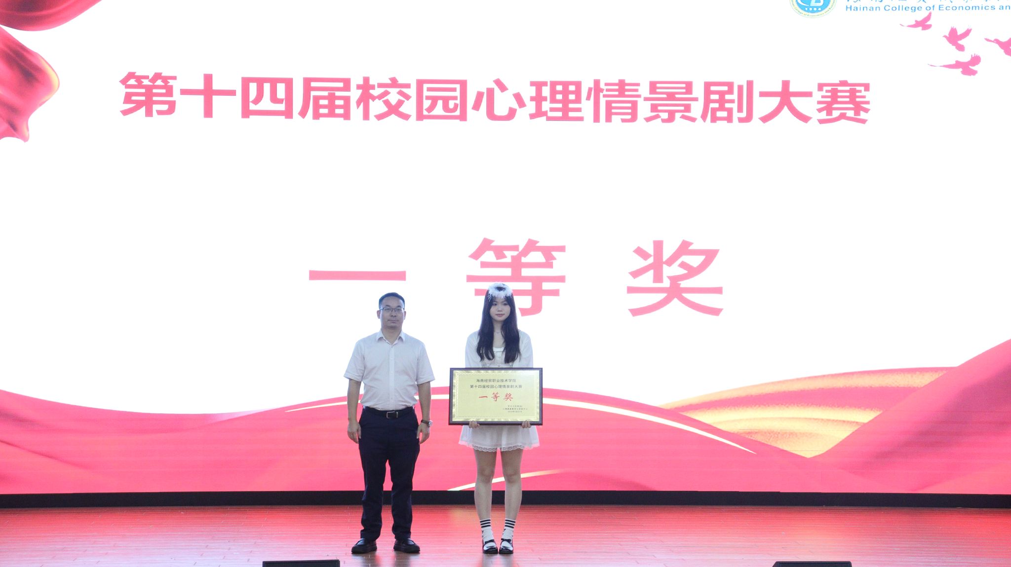 经过激烈角逐,乌拉尔学院作品《郁见》以深刻的现实剖析和饱满的人物塑造脱颖而出,荣获一等奖;财务管理学院的《微笑背后的秘密》、国际贸易学院的《撕掉焦虑,直面未来》和人文艺术学院的《美的定义》3部作品荣获二等奖;国际旅游学院的《心态转变,焦虑不见》、国际教育学院的《迷失与寻觅》、信息技术学院的《存在,为自己闪耀就好》、体育与健康学院的《花若盛开》和机电与汽车工程学院的《“网”与“恋”》5部作品荣获三等奖。范欣欣、杨玖林、印华、黄惠荣获“优秀指导教师”,罗文斌、叶思盈荣获最佳男、女演员奖。