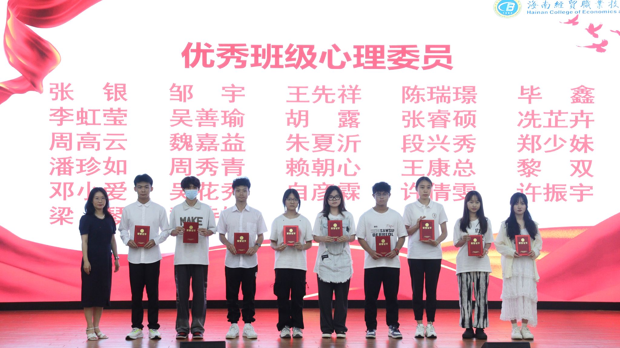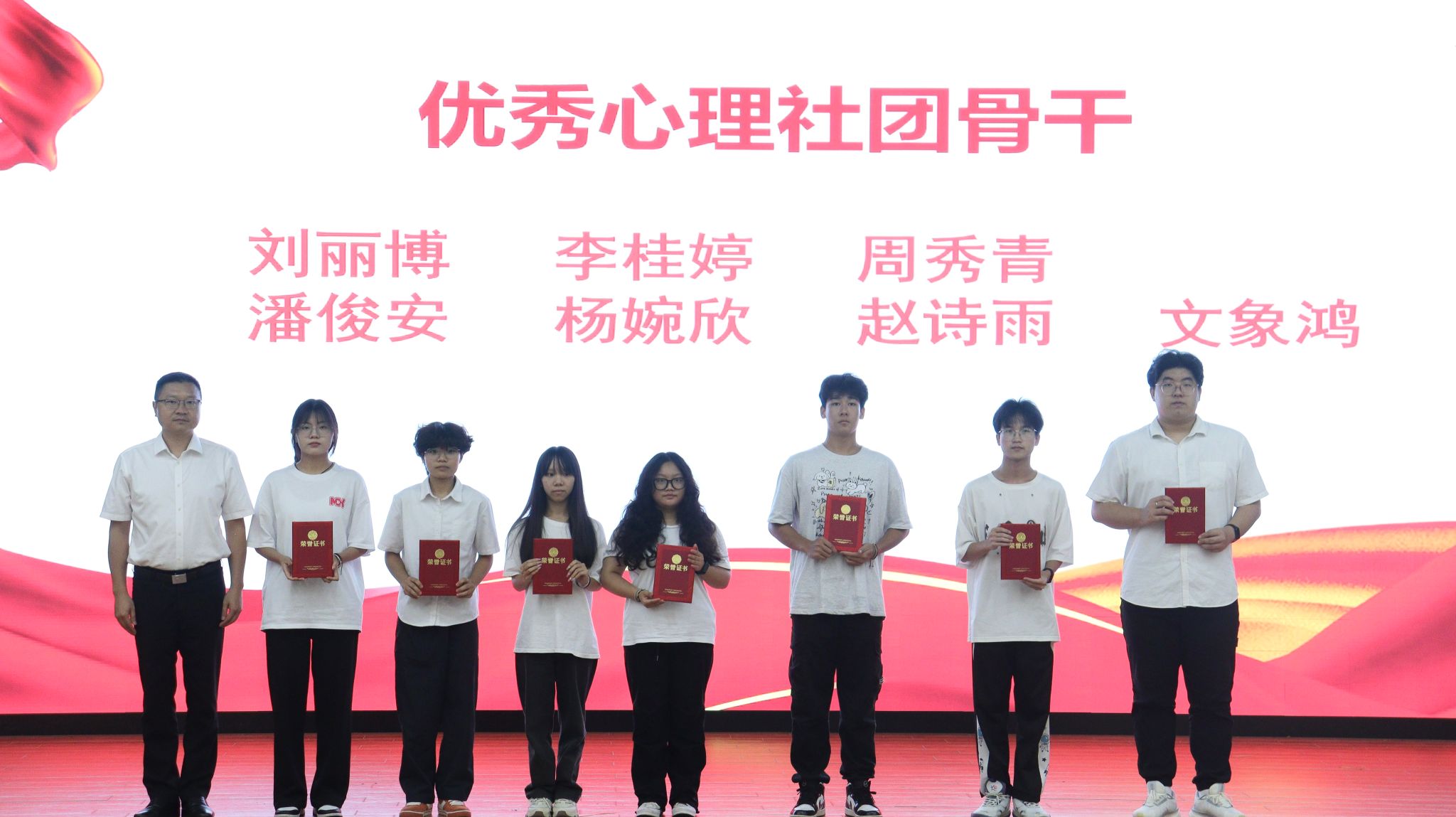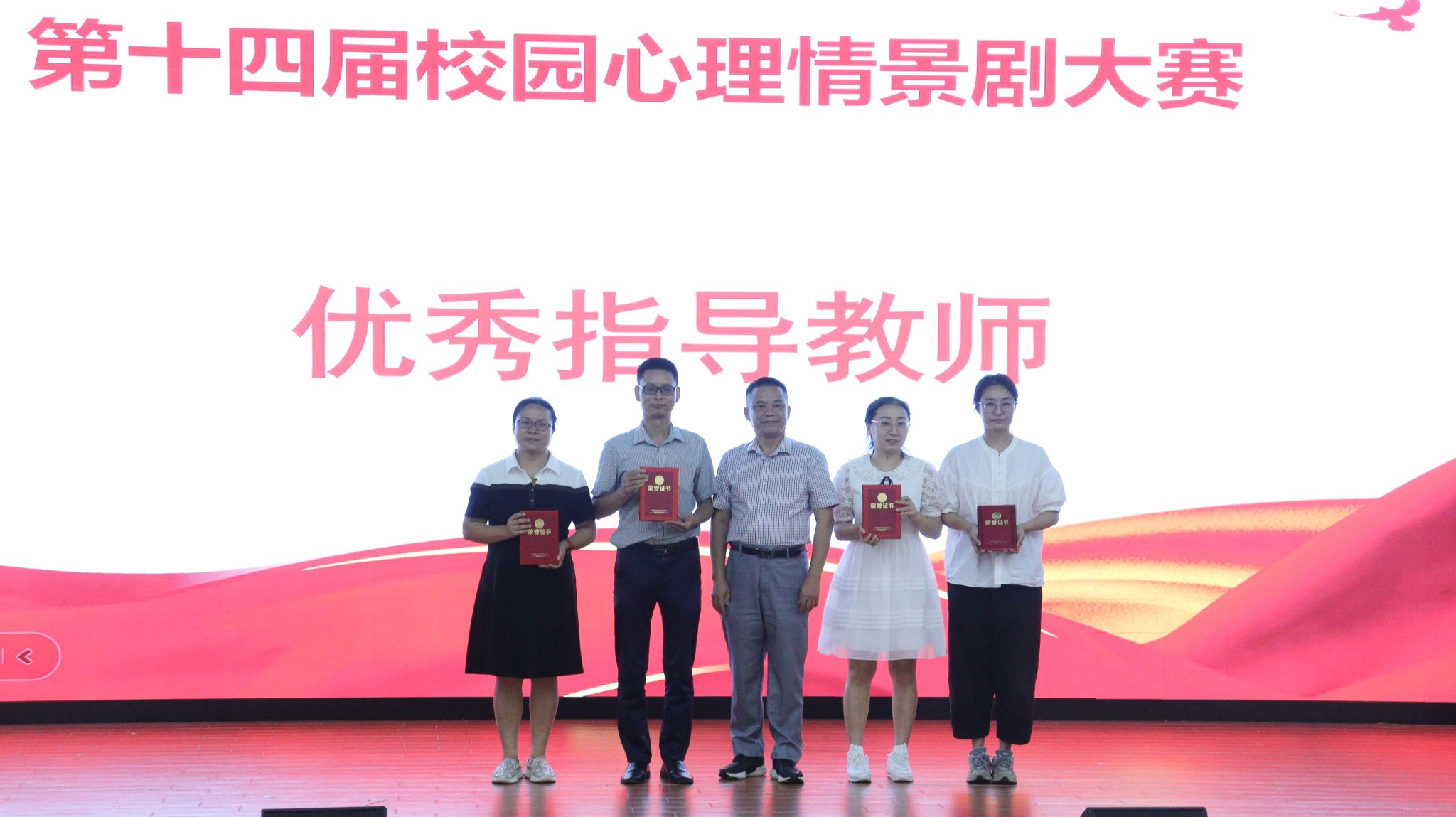 比赛开始前,学校对张晓阳等14名“优秀教师心理骨干”、张银等27名“优秀班级心理委员”、刘丽博等7名“优秀心理社团骨干”进行了表彰。