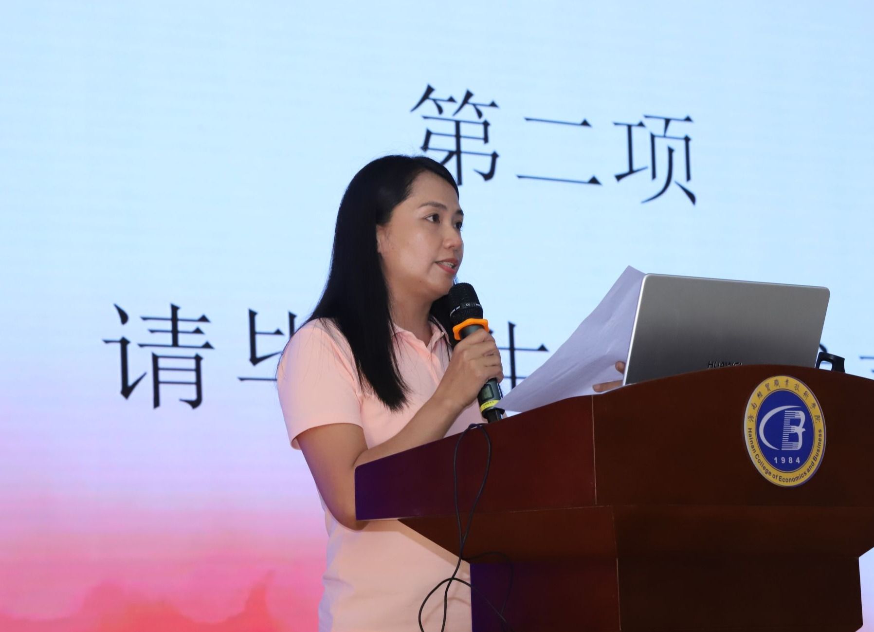 毕业生代表宋云蝶对辛勤付出的老师们表示诚挚感谢,对两年半以来互相支持、共同进步的同学们表示衷心祝福。她说,感谢米兰圆了自己的大学梦,在这里学会了如何思考、如何面对挑战,这些经验将成为未来人生道路上的宝贵财富。她回顾了这一段充实而难忘的日子,对未来充满期待与憧憬,表示将谨记母校教诲,用所学知识为社会贡献应有力量,并祝福米兰的明天更加辉煌美好。