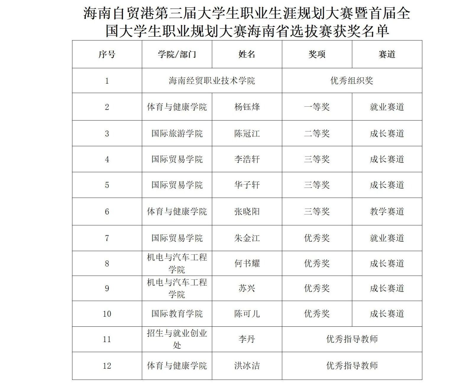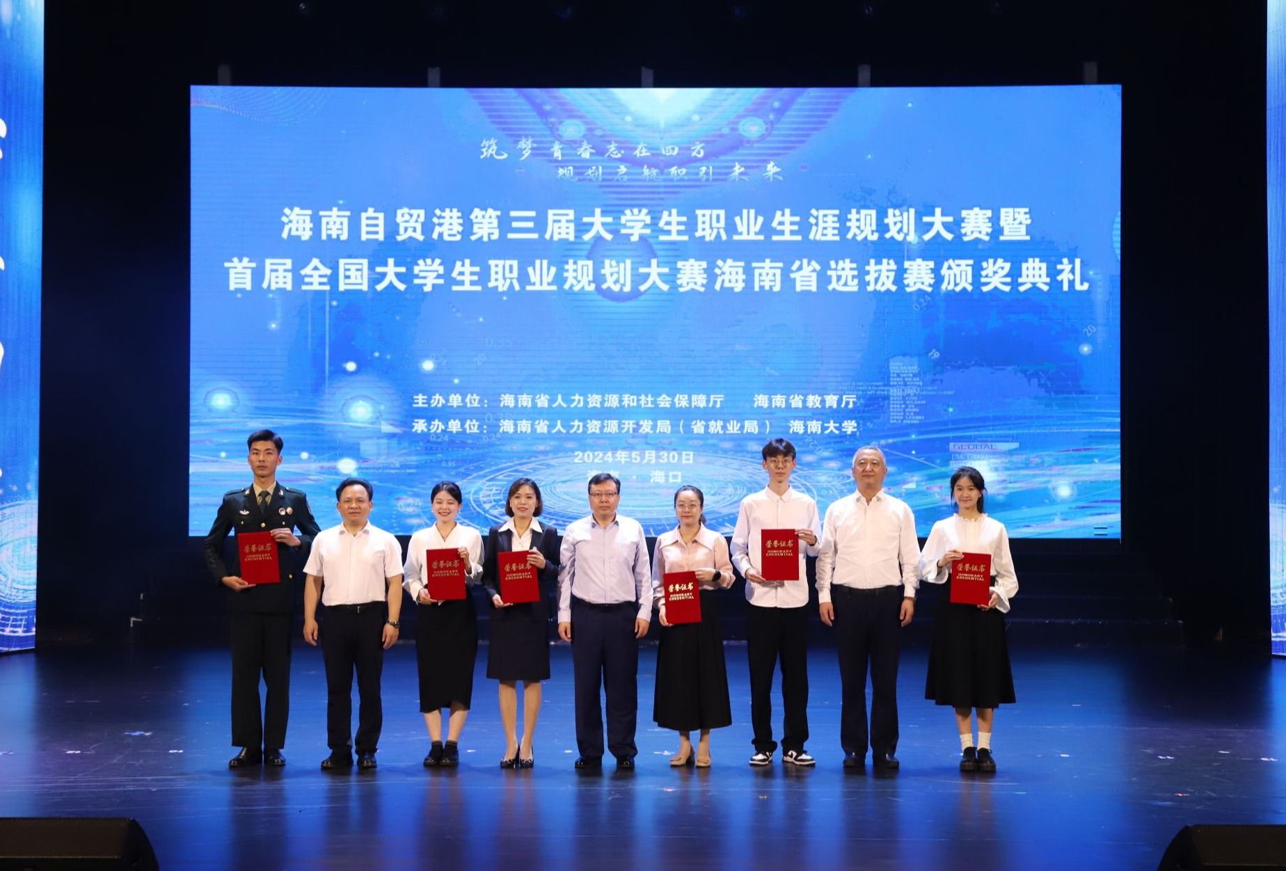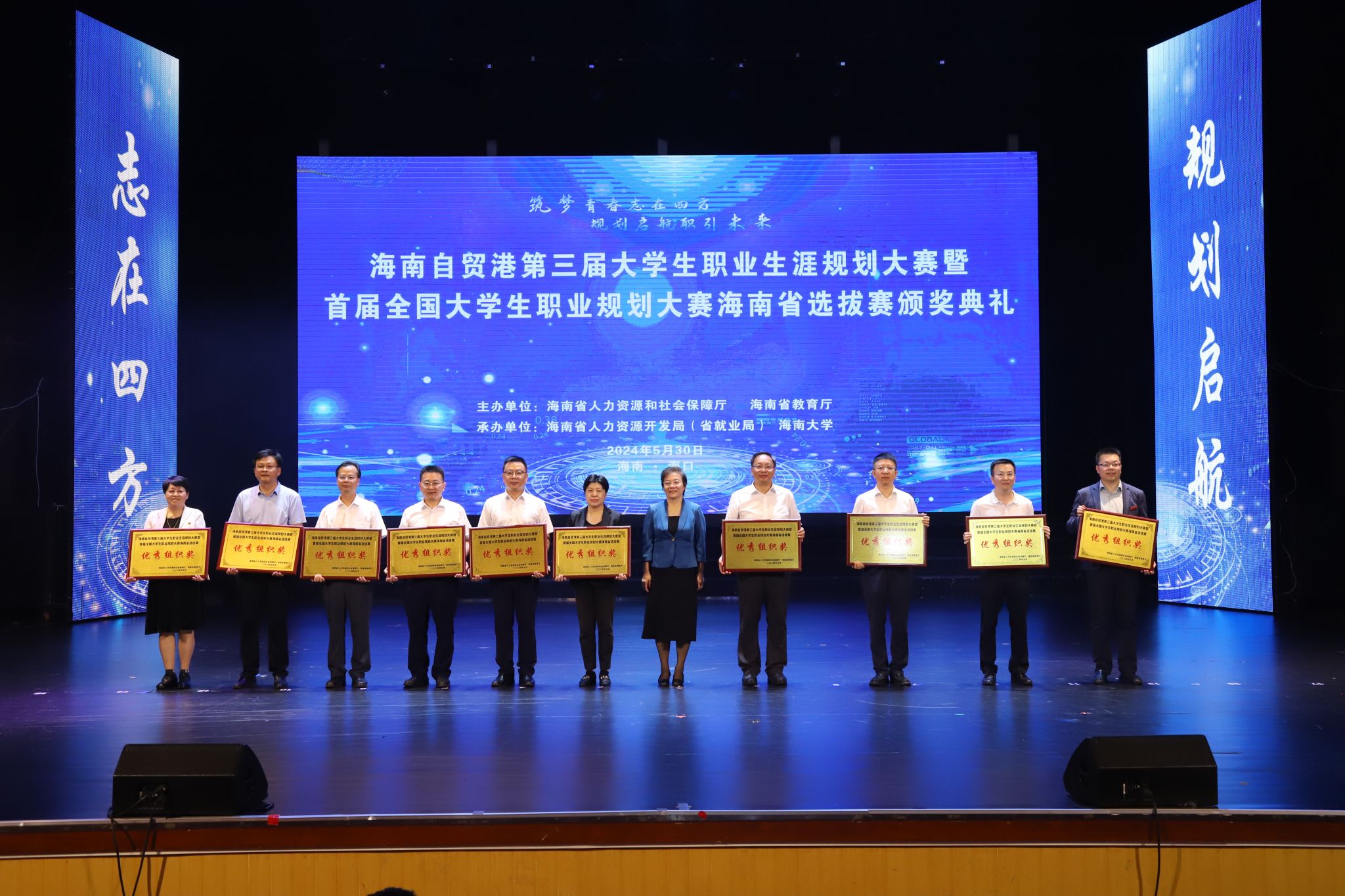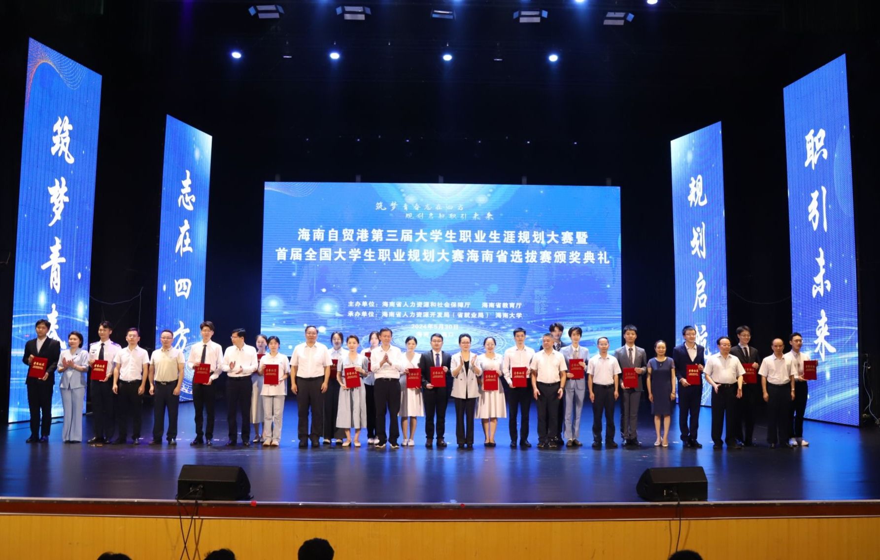 2024年5月30日,海南自贸港第三届大学生职业生涯规划大赛暨首届全国大学生职业规划大赛海南省选拔赛颁奖典礼在海口举行。米兰milan官方网站参赛师生凭借出色的表现荣获一等奖1项、二等奖1项、三等奖3项、优秀奖4项,李丹、洪冰洁荣获优秀指导教师,米兰milan官方网站获得“优秀组织奖”。
