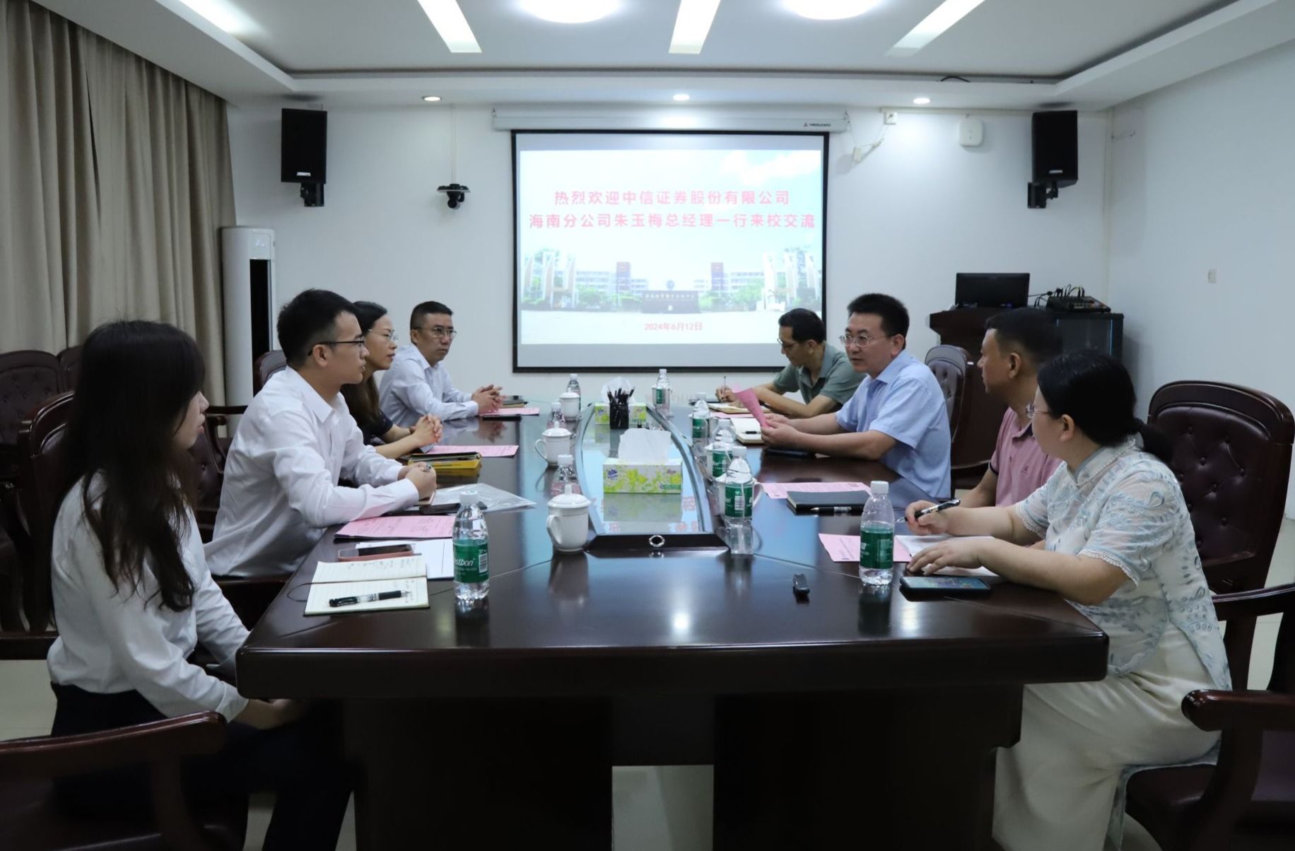 2024年6月12日,中信证券股份有限公司海南分公司总经理朱玉梅一行4人来到米兰milan官方网站,就产学研合作、学生实习就业等事宜进行洽谈。学校党委副书记、院长崔昌华热情接待了朱玉梅一行。
