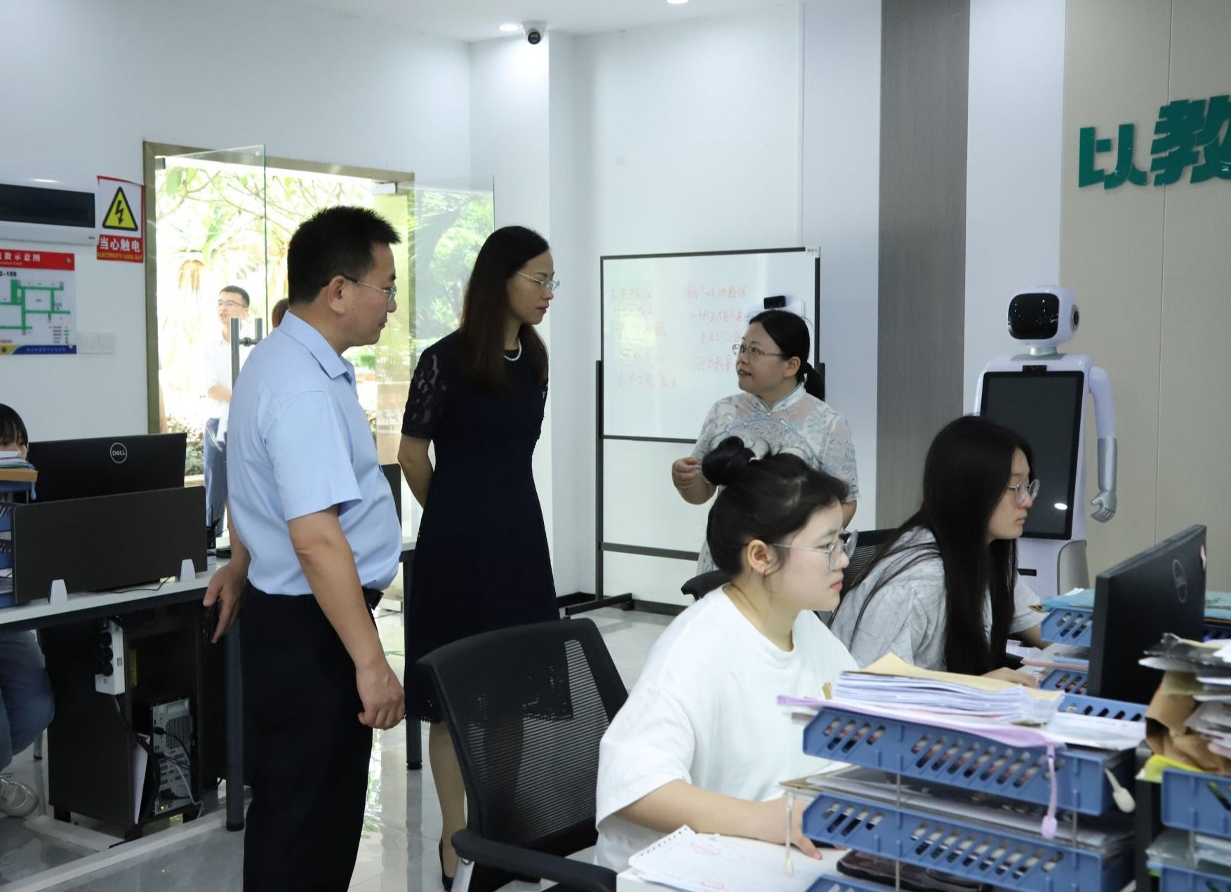 崔昌华陪同朱玉梅一行参观校园,介绍了学校的基础设施建设和校园环境等情况。在数智财务产教融合实践基地,财务管理学院有关负责人向朱玉梅介绍了各实训室建设、学生培养、校企合作的经验做法和“双高”建设取得的成绩。