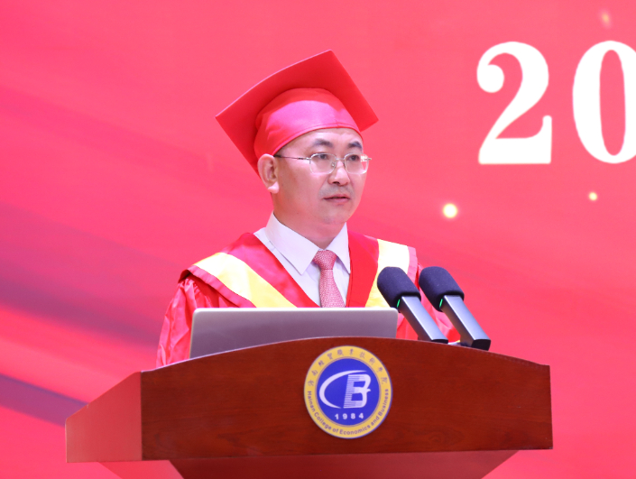刘文斌宣读学校关于准予毕业、结业和授予准学士学位的相关决定和关于表彰2024届“优秀毕业生”的决定。